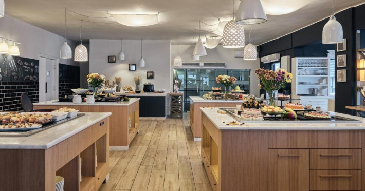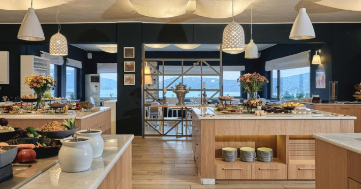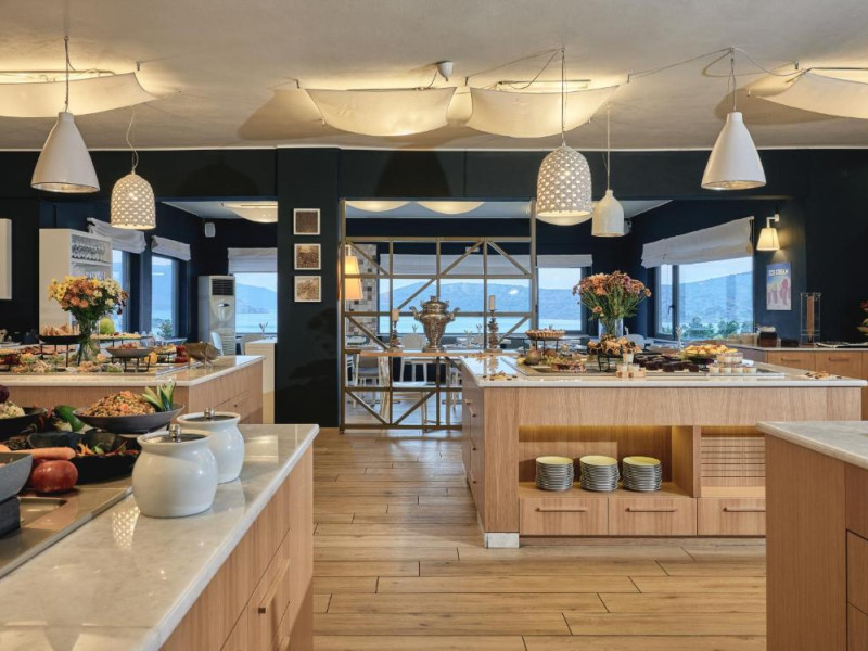 Locurile unde se poate lua masa cuprind un restaurant, o sală pentru micul dejun, o cafenea și un bar. Băuturile răcoritoare de la barul de pe plajă creează momente minunate. Se oferă spre rezervare regim all inclusive. Un mic dejun, un pranz și o cină stau la dispoziție pentru toate poftele. La cerere pot fi pregătite feluri de mancare dietetice, mese fără gluten și feluri de mancare vegetariene. Complexul oferă un sortiment de băuturi alcoolice și nealcoolice.