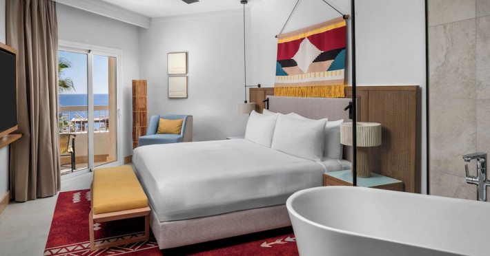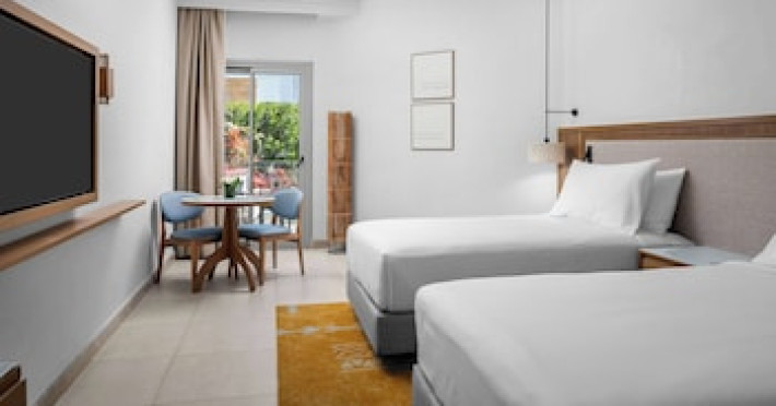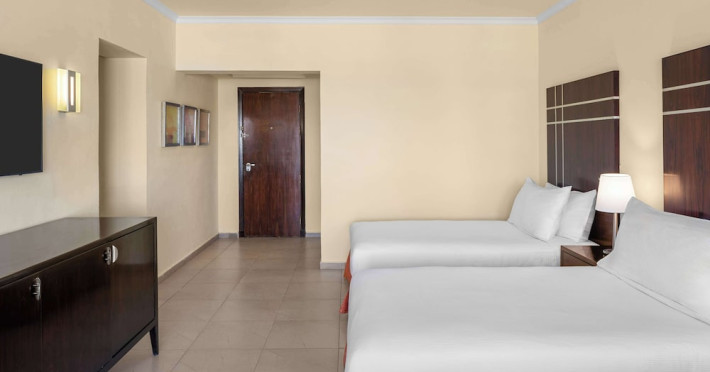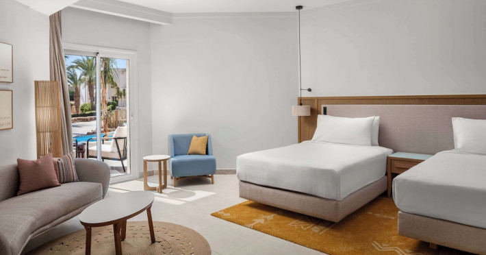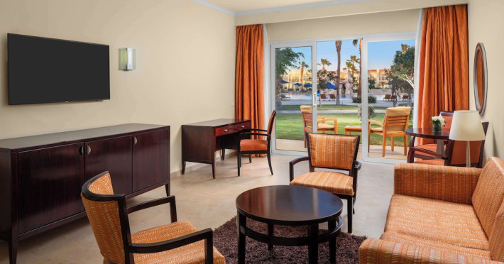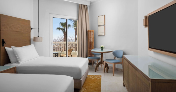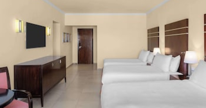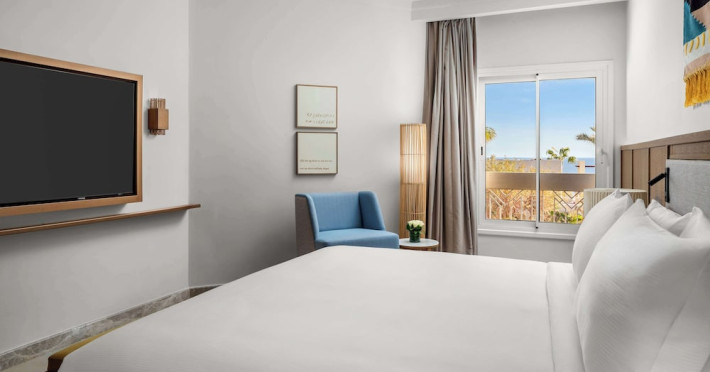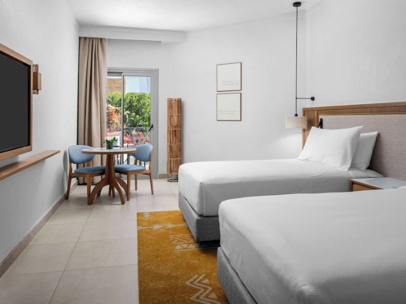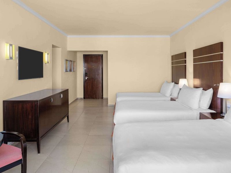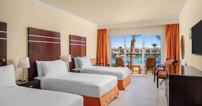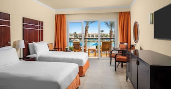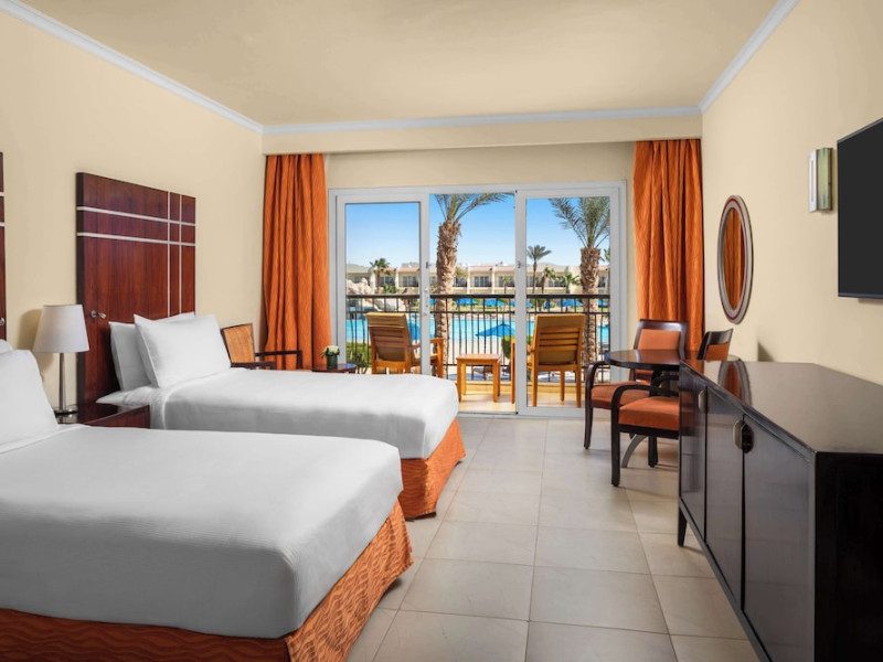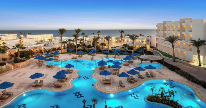 Spend the day on the private beach or dip into one of the 4 outdoor swimming pools. This hotel also features complimentary wireless internet access, concierge services, and an arcade/game room. Getting to the surf and sand is a breeze with the complimentary beach shuttle.lt;stronggt;Property Locationlt;/stronggt;lt;pgt;When you stay at DoubleTree by Hilton Sharm El Sheikh - Sharks Bay Resort in Sharm El Sheikh, youapos;ll be in a shopping district, within a 15-minute walk of Sharkapos;s Bay and SOHO Square. This beach hotel is 8.4 mi (13.5 km) from Naama Bay and 6.7 mi (10.8 km) from Domina Coral Bay Congress Centre.lt;brgt; Distances are displayed to the nearest 0.1 mile and kilometer. lt;br /gt; lt;pgt;Sharkapos;s Bay - 0.7 km / 0.4 mi lt;br /gt; SOHO Square - 0.9 km / 0.6 mi lt;br /gt; Shark Bay - 1.4 km / 0.9 mi lt;br /gt; Sharkapos;s Bay Beach - 3.1 km / 1.9 mi lt;br /gt; Jackson Reef - 5.2 km / 3.2 mi lt;br /gt; Sharm El Sheikh Golf Resort - 6.1 km / 3.8 mi lt;br /gt; Rehana Beach - 7.8 km / 4.8 mi lt;br /gt; Sharm El-Sheikh International Convention Center - 7.8 km / 4.8 mi lt;br /gt; Hollywood Sharm El Sheikh - 10.2 km / 6.4 mi lt;br /gt; Domina Coral Bay Congress Centre - 10.8 km / 6.7 mi lt;br /gt; Sinai Grand Casino - 11.6 km / 7.2 mi lt;br /gt; Nabq Bay - 12.7 km / 7.9 mi lt;br /gt; Cleo Park - 13 km / 8.1 mi lt;br /gt; Naama Bay - 13.5 km / 8.4 mi lt;br /gt; Ras Mohamed National Park - 15.3 km / 9.5 mi lt;br /gt; lt;/pgt;lt;pgt;The nearest major airport is Sharm El-Sheikh Intl. Airport (SSH) - 9.8 km / 6.1 milt;/pgt;lt;brgt; lt;stronggt;Roomslt;/stronggt;lt;pgt;Make yourself at home in one of the 629 air-conditioned rooms featuring MP3 docking stations and LCD televisions. Your Select Comfort bed comes with Egyptian cotton sheets. Rooms have private balconies or patios. Complimentary wireless internet access keeps you connected, and satellite programming is available for your entertainment. Private bathrooms with bathtubs or showers feature spring water baths and complimentary toiletries.lt;pgt; lt;stronggt;Dininglt;/stronggt;lt;pgt;All-inclusive rates are available at this hotel. Meals and beverages at onsite dining establishments are included in all-inclusive rates. Charges may be applied for dining at some restaurants, special dinners and dishes, some beverages, and other amenities. lt;pgt;Grab a bite at Waves Bar, one of the hotelapos;s 2 restaurants, or stay in and take advantage of the 24-hour room service. Mingle with other guests at the complimentary reception, held daily. When you are in need of a refreshing drink, visit the beach bar or one of 4 bars/lounges, or 3 poolside bars. A complimentary full breakfast is served daily from 6:30 AM to 11 AM. lt;/pgt;lt;pgt; lt;stronggt;Business, Other Amenitieslt;/stronggt; lt;pgt;Featured amenities include limo/town car service, express check-out, and dry cleaning/laundry services. Planning an event in Sharm El Sheikh? This hotel has 2153 square feet (200 square meters) of space consisting of conference space and 3 meeting rooms. A roundtrip airport shuttle is provided for a surcharge (available 24 hours), and free self parking is available onsite.lt;pgt;