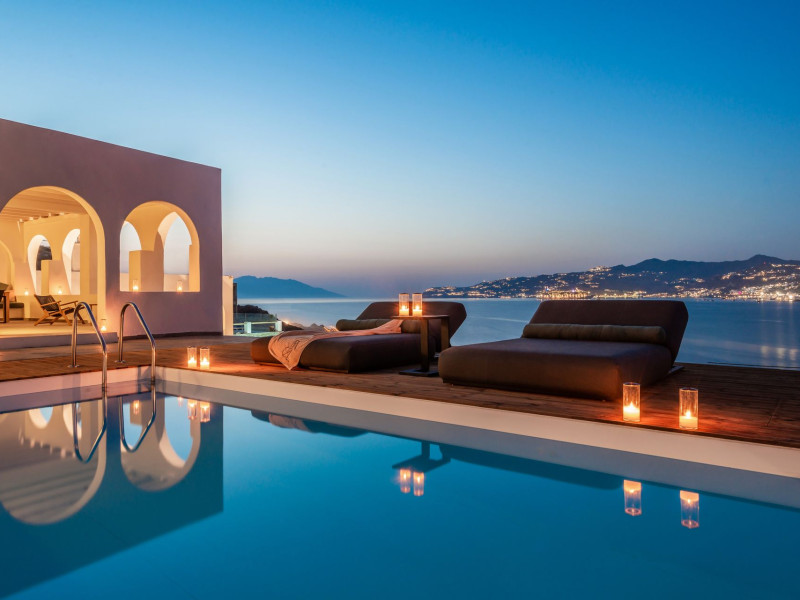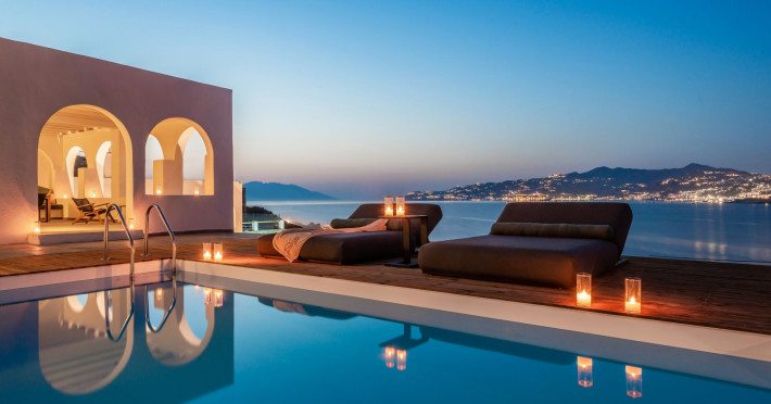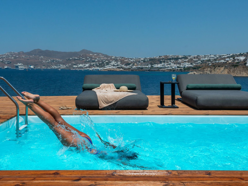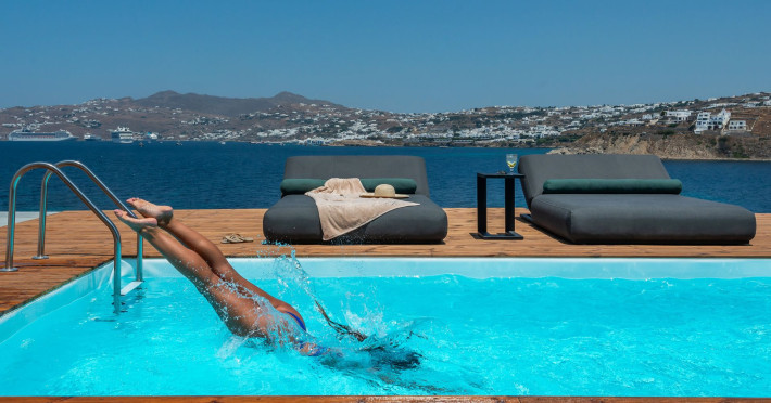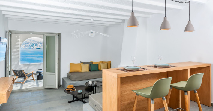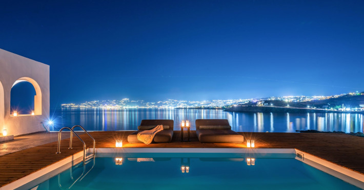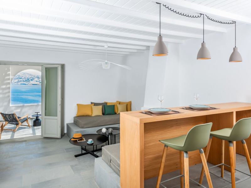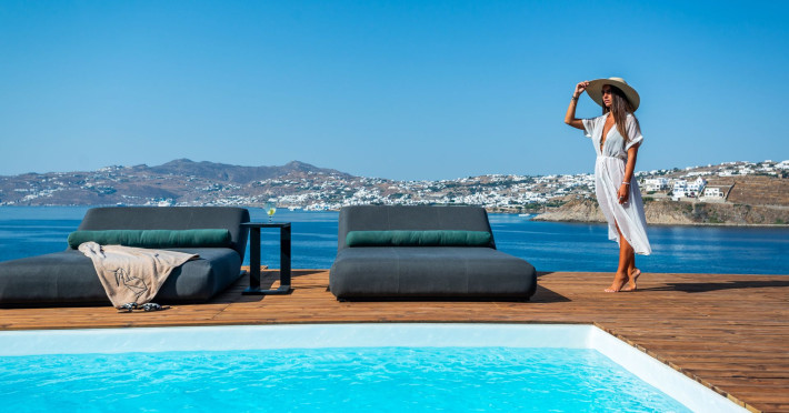 Dreambox Mini Villas is a stylish and contemporary beachfront escape overlooking the Aegean sea waters of Korfos Bay in Mykonos, Greece. Dreambox Mini Villas consists of an exclusive collection of 6 villas, providing an unique lifestyle experience. In front of Korfos Bay in the lovely village of Ornos, Dreambox Mini Villas all with Mykonian style rooms, modern furniture, private pools and elements promise to guests a tailor made hospitality.