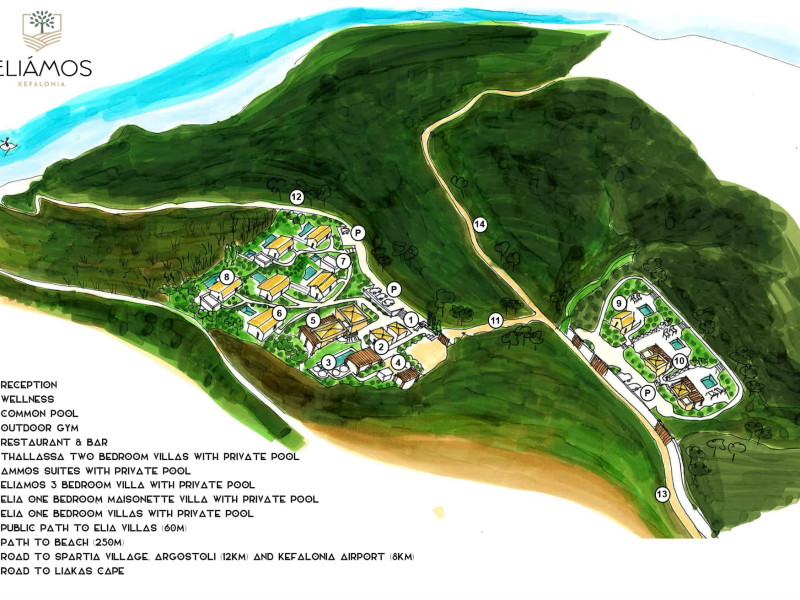 Eliamos is a with 12 private, elegantly-furnished, villas and suites, each with their own spacious garden and private pool, in a scenic location on the southern coast of the island.With stunning views across the Ionian Sea and directly above a discrete beach, Eliamos combines sophistication with simplicity to provide guests a natural and unique hospitality experience.We invite you to explore our villas and contact us to plan your perfect trip to Kefalonia this summer.Good to know: Elia plot is located just 60 meters from the main hotel entrance and is reached by walking along a traditional village unpaved road, offering a short and authentic local experience.