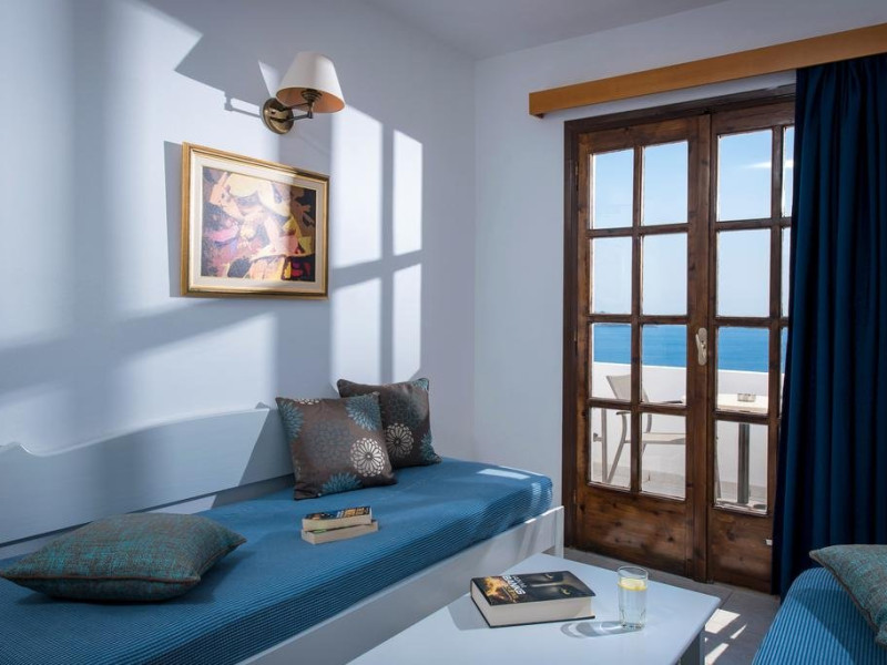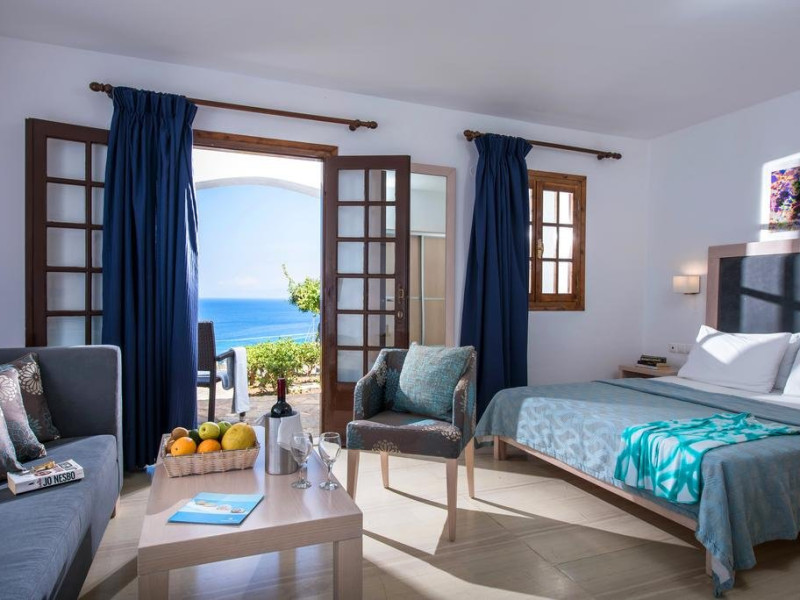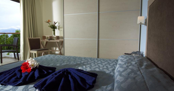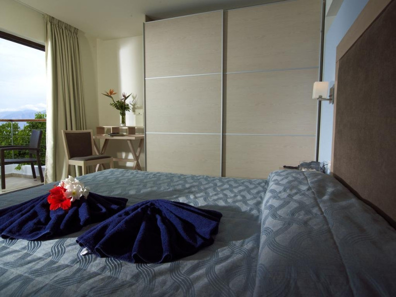 Dotari camere: Cele 85 de camere sunt de 4 categorii: single cu vedere la gradina, duble cu vedere la mare sau spre gradina, bungalouri superioare cu vedere la mare si camere family cu vedere la mare. Toate camerele sunt dotate cu telefon, aer conditionat, wi-fi (contra cost), frigider (cu plata), seif (contra cost ~ 1.5 euro/zi), baie cu cada, uscator de par, televizor satelit, balcon/terasa. Camerele si bungalourile superioare au fost renovate.