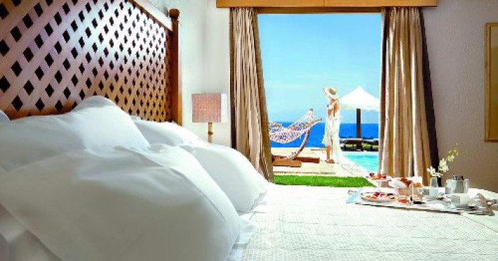 Localizare: cel mai exclusivist resort din Elounda este localizat pe o peninsula ce ofera o panorama superba spre golfurile Elounda si Mirabello, avand acces direct la propria plaja de nisip premiata cu “Blue Flag”. Facilitati hotel: Resortul are unul dintre cele mai mari centre destinate sporturilor nautice din Grecia, dispune de 3 terenuri de tenis, centru fitness cu echipament Cybex, biliard, tenis de masa, salon pentru bridge si alte jocuri de carti, centru spa “Six Senses” cu saloane de lux pentru tratamente, hammam, talazoterapie, coafor si un sector privat numit “Spring Suite”, teren de golf cu 9 gauri in cadrul resortului Porto Elounda, apartinand aceluiasi lant hotelier, mini club pentru copii intre 6 luni si 12 ani, cu sectoare separate in functie de varsta (6 luni – 5 ani / 5-12 ani). Locurile de joaca au un sector acoperit si unul in aer liber si au fost proiectate astfel incat copiii sa fie feriti de expunerea la soare. In mini club se organizeaza activitati ca: gradinarit, prepararea de prajituri, mini olimpiade, olarit, pictura, vanatoare de comori, realizarea de masti sau papusi. 7 experiente culinare oferite de cele 7 restaurante tematice si 5 baruri unice sunt garantia unui rasfat gastronomic oferit de Elounda Peninsula oaspetilor sai. Dotari camere: intime, exclusiviste si intr-adevar unice. Un hotel fara camere standard …doar cu suite! Suitele sunt dispuse pe doua niveluri si constau intr-un dormitor cu pat matrimonial si baie localizate la etajul superior si un living room situat la parter. Living-ul are terasa si acces direct spre piscina proprie incalzita. Dotarile standard constau in: aer conditionat, televizor LCD, DVD/CD player, birou, telefon, acces internet Wi-Fi, mini bar, uscator de par, seif, perne hipoalergenice, bai de lux de marmura cu cada Airbath, dus, sistem audio, telefon, uscator de prosoape, halate de baie si papuci. Web site: www.eloundapeninsula.com