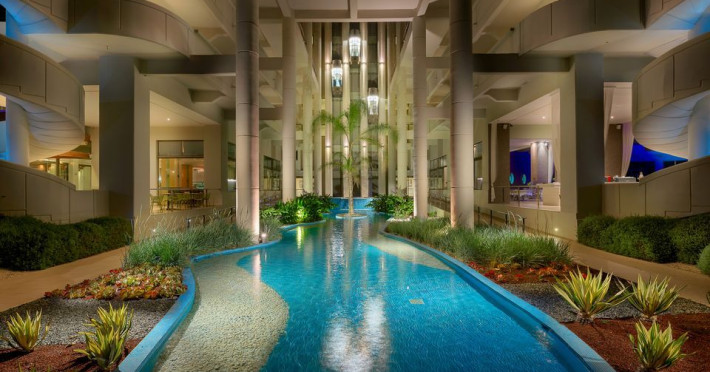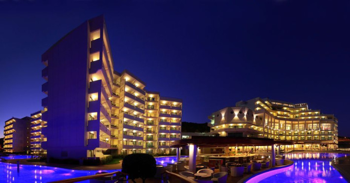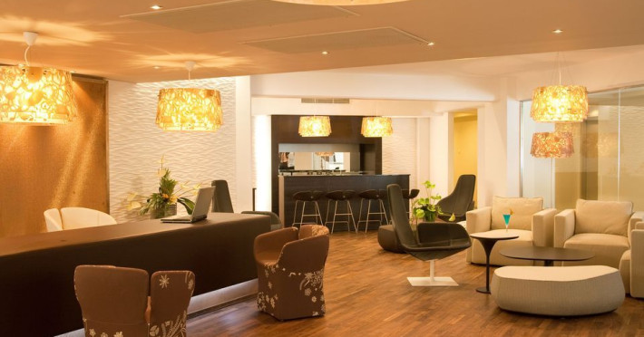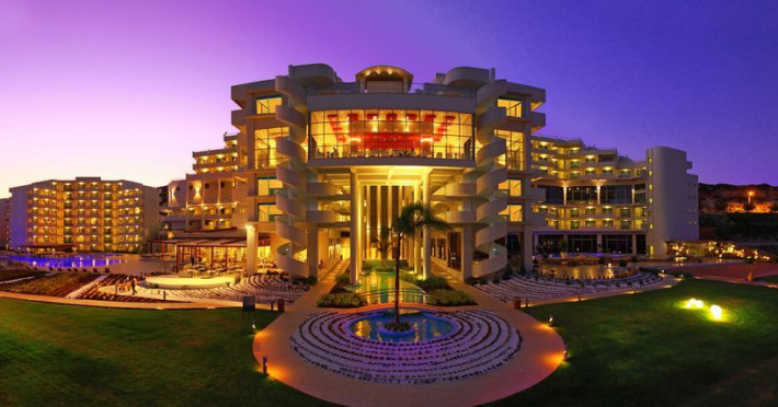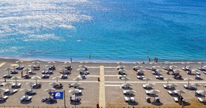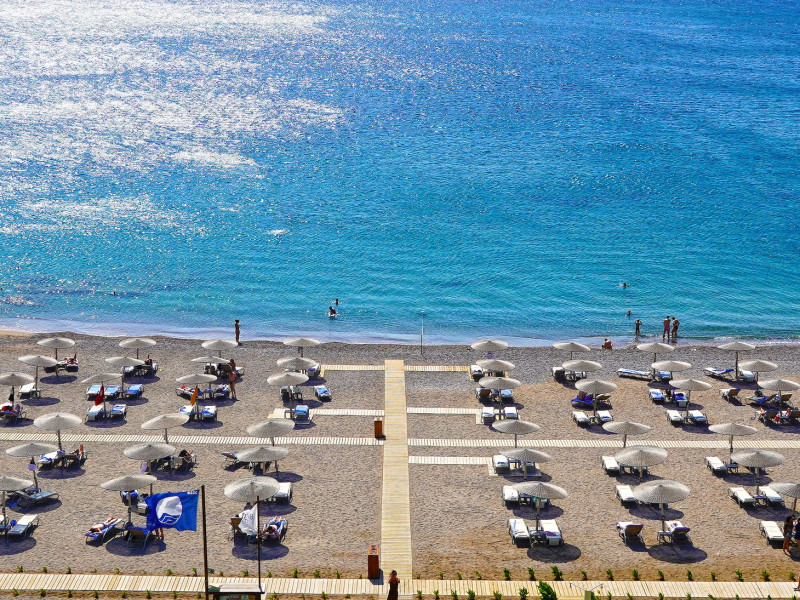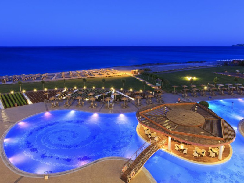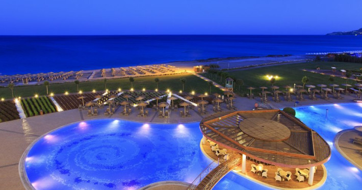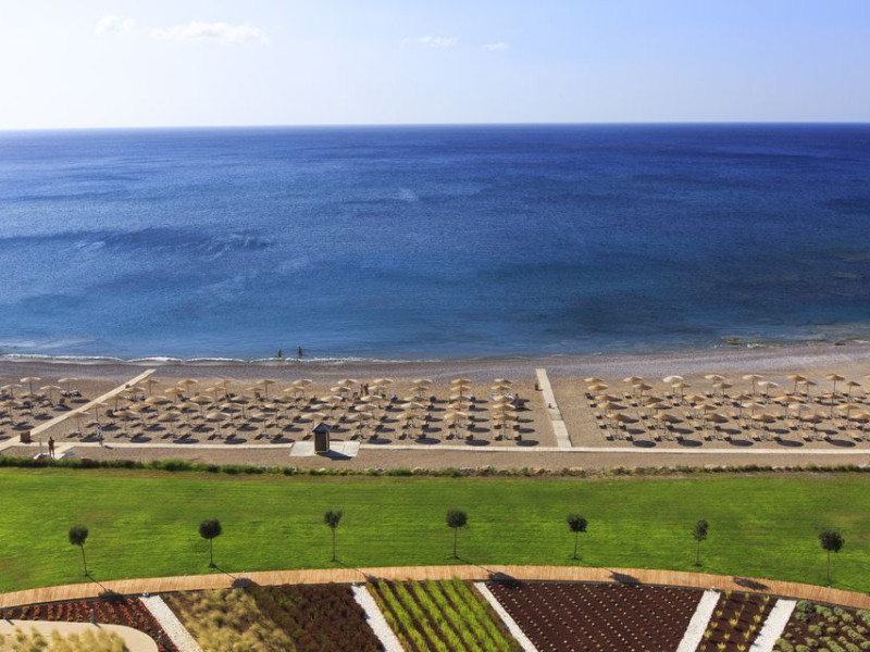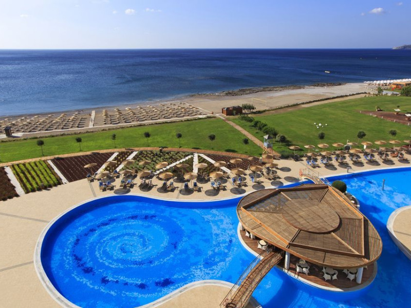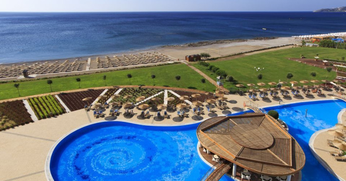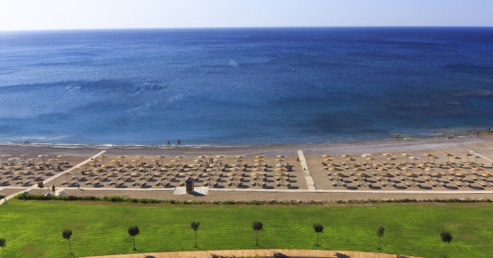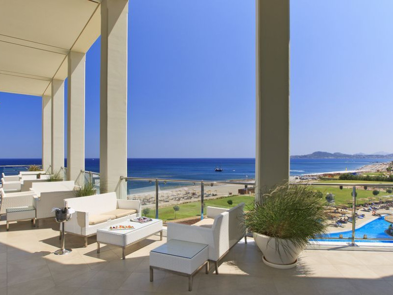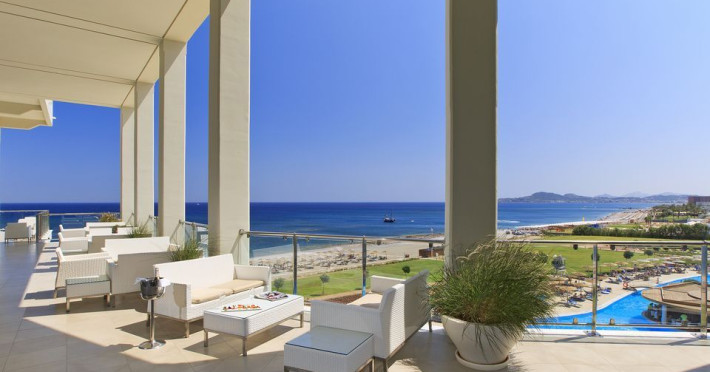 The luxurious Elysium Resort & Spa enjoys a premier beachfront location right on the Blue flag awarded beach of Kallithea, next to the famous monument of Kallithea Springs, just 9 km from the city of Rhodes. It consists of 3 separate buildings with contemporary style architecture: the main building with 8 floors and an impressive atrium, 3 panoramic glass elevators and a large garden lagoon on the ground level, and 2 separate additional wings with 6 and 7 floors respectively. The Elysium Resort & Spa is distinguished by its elegant décor and high aesthetics in both its public areas and guest rooms.