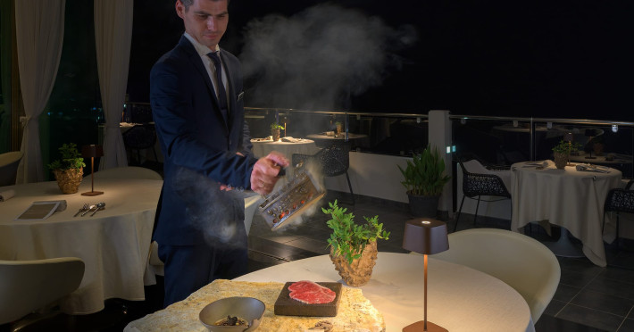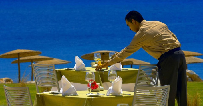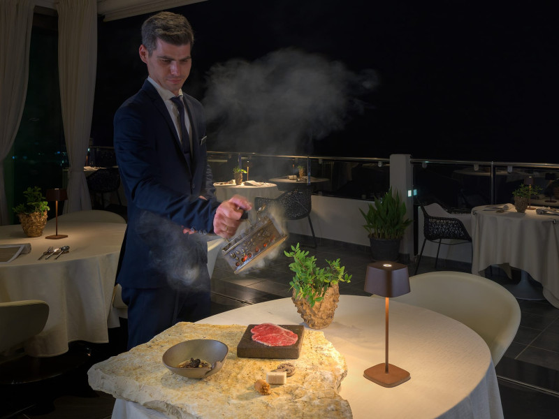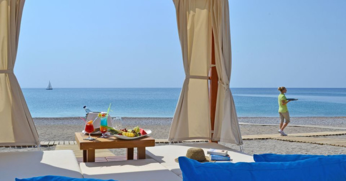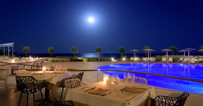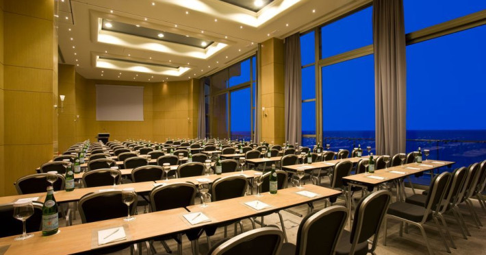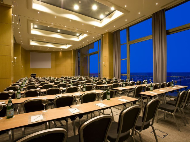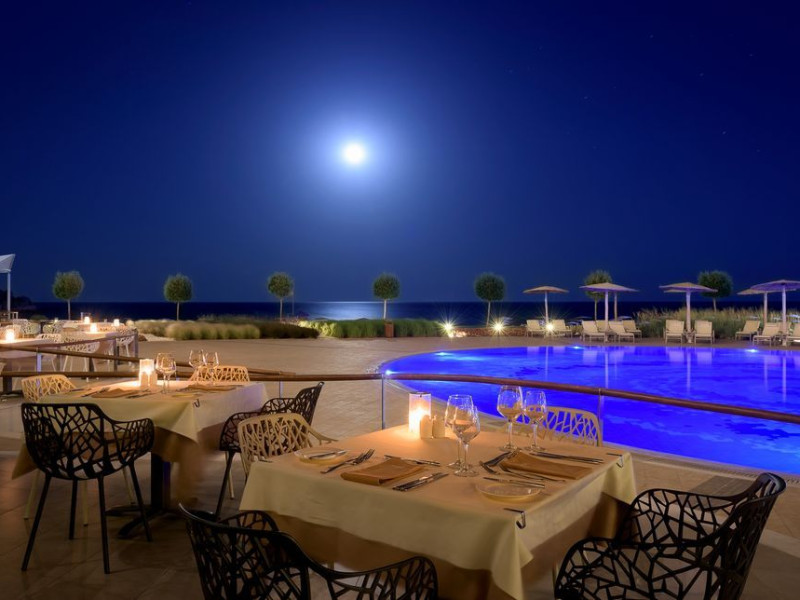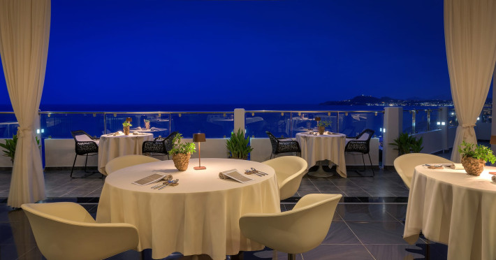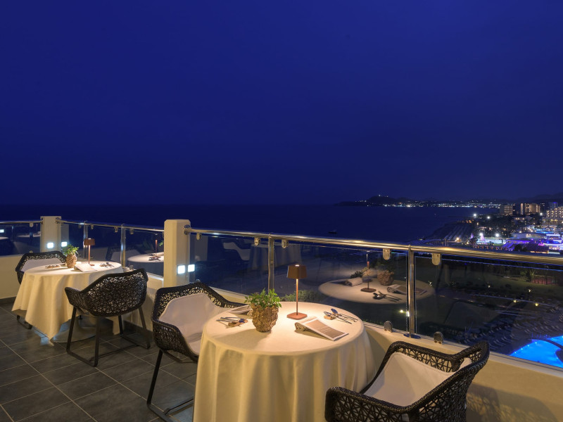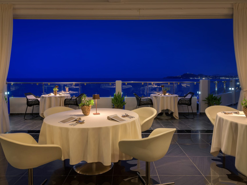 The hotel features 3 atmospheric bars and 3 restaurants with fine cuisine, including Noble Gourmet, a rooftop restaurant with the unsurpassed panoramic view of the sea, awarded with Toque d' Or and Greek Cuisine Award, which offers an à la carte unique multi-sensory culinary experience, based on Rhodian cuisine.