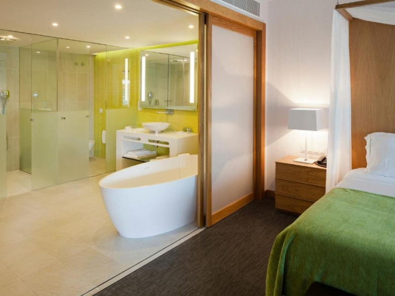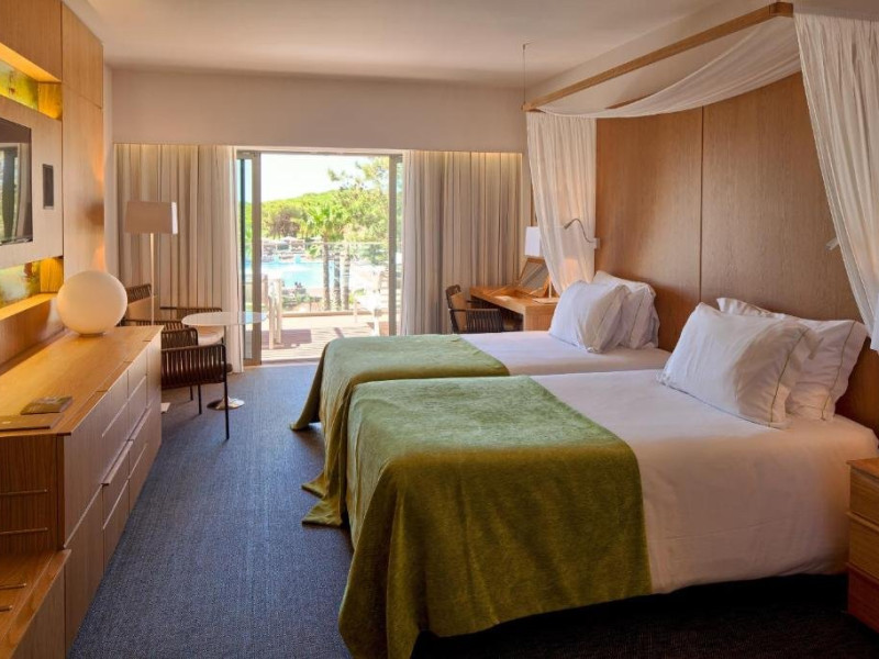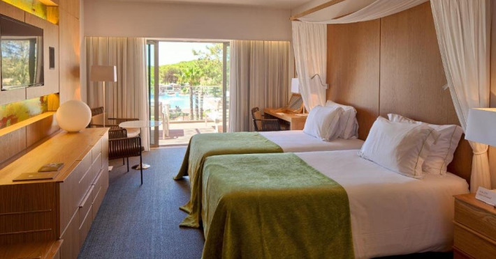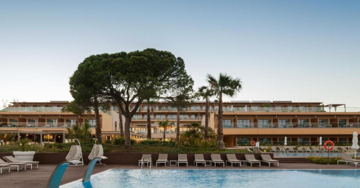 Descriere HOTEL EPIC SANA: Situat intre Vilamoura si Albufeira, pe o suprafata de 8 hectare, intr-o padure de pin amenajata (in timpul constructiei s-au taiat minim posibil din pinii existenti), hotelul EPIC SANA ofera vedere la plaja Falesia, acces direct la plaja, unitati de cazare de lux, un centru SPA mare si piscine exterioare si interioare. Este un hotel nou, modern, exclusivist, cu elemente de design unice pe intreaga coasta. Tip masa: Mic dejun/demipensiune Localizare HOTEL EPIC SANA: Resortul este situat in apropiere si cu acces direct la plaja Falesia, intre statiunile Albufeira si Vilamoura, la 30 km de aeroportul din Faro. Centrul orasului Albufeira se afla la 15 minute de mers cu masina. Plaja: Plaja Falesia este cu nisip fin iar intrarea in apa este lina. Este plaja publica. Dotari camere: Hotelul dispune de 229 camere din care 162 camere standard in cladirea principala, 24 suite tip duplex si 43 de apartamente. Camerele spatioase au un design contemporan si includ o baie amenajata cu marmura alba si dotata cu cada si dus cu efect de ploaie. Toate camerele ofera de asemenea un balcon cu vedere partiala la ocean sau vedere la complex si sunt dotate cu aer conditionat, TV satelit, minibar, uscator de par, seif si internet wireless gratuit. Facilitati HOTEL EPIC SANA: Complexul beneficiaza de 5 restaurante, 3 baruri, 7 piscine din care 6 piscine in aer liber (2 pentru copii), piscina interioara deschisa 24h, internet wireless gratuit, teren de joaca pentru copii, baby center, terenuri de sport, centru de conferinte de 1500 mp, un centru SPA extrem de mare si modern si parcare. Clasificarea agentiei: 5*