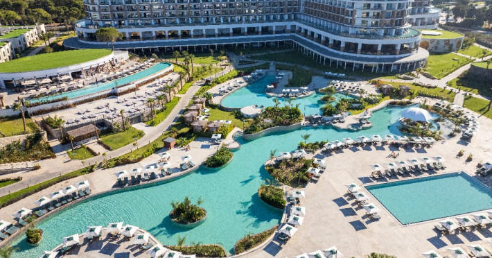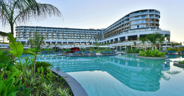 Descriere: Hotelul este situat la malul marii, la aproximativ 40 de minute, pe jos, de centrul orasului Belek. Din 2024, hotelul isi va intampina oaspetii cu o varietate de facilitati printre care 7 tipuri de restaurante a la carte, o gama larga de tipuri de bar, incusiv o crama, spa si centru wellness, aquapark pentru adulti si pentru copii, petreceri si muzica live, o varietate de jocuri, asadar, alegerea potrivita pentru vacanta perfecta pe malul Marii Mediterane.