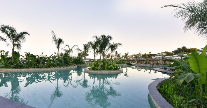 Facilitati hotel: Hotelul pune la dispozitia turistilor: 7 restaurante a la carte, 18 baruri, crama, club pe plaja, 2 restaurante pentru copii, inghetata, ciocolaterie, piscine, piscina pentru copii, aquapark pentru adulti si pentru copii, piscina interioara pentru adulti si pentru copii, Spa si centru Wellness cu sauna, diferite tipuri de masaj printre care si masaj Thai, tratamente de infrumusetare, centru fitness, petreceri, muzica live, programe de animatie si petreceri pentru copii, tenis, padel, tenis de masa, fotbal, darts, yoga, pilates, gimnastica in apa, lectii de inot, sporturi pe apa, inchiriere biciclete, club pentru copii.