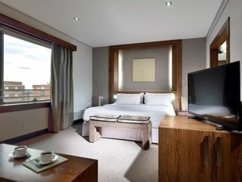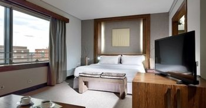 In Madrid (Fuencarral-El Pardo). Located in Madrid (Fuencarral-El Pardo), Eurostars Suites Mirasierra is within a 10-minute drive of Santiago Bernabéu Stadium and Plaza de Castilla. This luxury hotel is 5.7 mi (9.1 km) from Gran Via and 4.8 mi (7.8 km) from IFEMA. Make yourself at home in one of the 182 guestrooms featuring minibars and LCD televisions. Your bed comes with down comforters and premium bedding. Complimentary wireless internet access keeps you connected, and satellite programming is available for your entertainment. Private bathrooms with separate bathtubs and showers feature complimentary toiletries and bidets. For lunch or dinner, stop by Verdil, a restaurant that specializes in Spanish cuisine. Dining is also available at the coffee shop/cafe, and room service (during limited hours) is provided. Relax with your favorite drink at the bar/lounge or the poolside bar. Buffet breakfasts are served on weekdays from 7 AM to 10:00 AM and on weekends from 8:00 AM to 11 AM for a fee. Be sure to enjoy recreational amenities, including a fitness center, a seasonal outdoor pool, and bicycles to rent. This hotel also features complimentary wireless internet access, concierge services, and wedding services.
