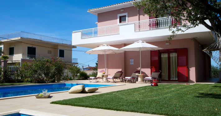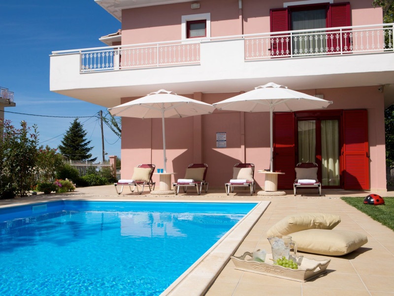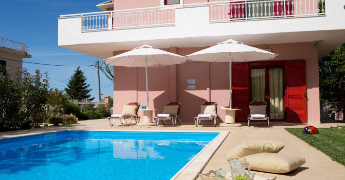 Our decision to create Exanthia Villas in our beloved island of Lefkas, in the village where we grew up and spent all the summers of our lives, aims at making your own holidays dreamy! The idyllic scenery, which combines the spectacular view of the cerulean Ionian waters with the serenity of nature and the quietness of the countryside, will offer you moments of relaxation and carelessness. With your family or friends, with or without kids, Exanthia Villas is the ideal destination. The simplicity and the aesthetic quality of our apartments, blending in with surroundings of insouciance as well as the delicate fragrance of the flowers will rejuvenate you! The calmness of having your breakfast in the balcony, the refreshing dive in the pool at noon, the breathtaking sunset in the afternoon or the breeze as evening falls; any time of the day you prefer, Exanthia villas will be an unforgettable experience and the best opportunity for you to discover the spirit of Greek Philoxenia (hospitality)!Enjoy your vacation in Exanthia, Lefkada by visiting the wonderful nearby beaches (within 12km by car from our property). You will fall in love with them.