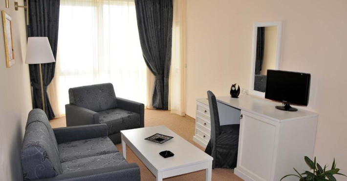 Complexul ofera cazare in camere duble si in apartamente, majoritatea avand vedere spre mare.Localizare: in partea sudica a statiunii, pe plaja.Dotari camera: aer conditionat, televizor, seif, telefon, acces internet, minibar, balcon/terasa.Facilitati hotel: restaurant principal, restaurant a-la-carte, lobby bar, cafenea, piscina exterioara, centru Spa modern, salon de infrumusetare, centru fitness, sauna, jacuzzi, solar, sala de masaj, baie cu aburi, sala de conferinte si centru business, casa de schimb valutar, parcare.