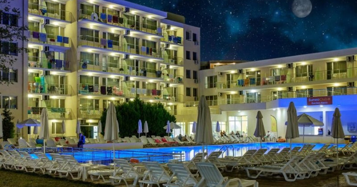 Localizare: Hotelul Garden Nevis se afla in statiunea Sunny Beach, la 800 de metri de parcul acvatic Action si la 300 de metri de plaja. Facilitati hotel: Hotelul pune la dispozitia turistilor centru de fitness, piscina sezoniera in aer liber, cu sectiune pentru copii, restaurant, gradina, terasa, serviciu de calcatorie (contra cost), curatatorie chimica (contra cost), spalatorie (contra cost), parcare (contra cost). Dotari camere: Camerele sunt dotate cu wifi, aer conditionat, TV cu ecran plat, birou, articole de toaleta gratuite.