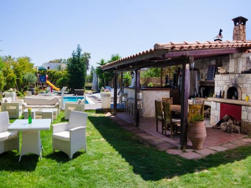 Facilitati hotel: Hotelul dispune de receptie 24 de ore, salon cu terasa, lift, colt vizionare TV, wi-fi gratuit in zona receptiei, un restaurant cu terasa unde multe dintre produse provin din ferma proprie, bar cu terasa, pool snack bar, beach bar, piscina cu jacuzzi (10:00-19:00), prosoape pentru plaja si piscina (contra cost), sezlonguri si umbrele gratuite la piscina si cu plata pe plaja, salvamar pe plaja, cabine de schimb si dusuri pe plaja, dus la piscina, gradina.