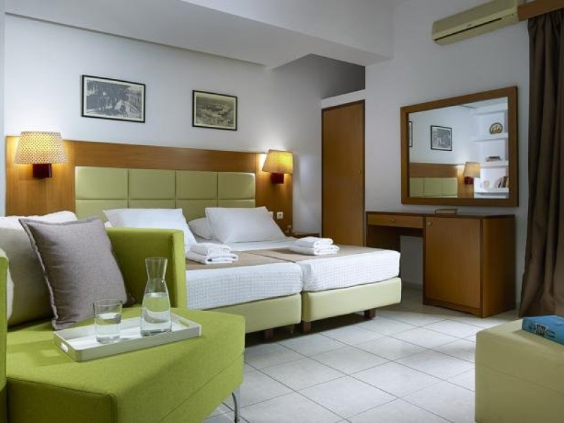 Dotari camere: camerele sunt de 4 categorii: camere duble de 15 mp (max 3 pax), camere duble superioare cu vedere la mare de 19 mp (max 3 pax), camere triple de 22 mp (max 4 pax), si studiouri duble de 17 mp (max 2 pax). Toate camerele sunt amenajate cu stil si au ca dotari standard aer conditionat, televizor, telefon, acces internet WiFi gratuit, inchiriere laptop (contra cost), baie cu dus, uscator de par, seif (contra cost), mini bar, facilitati pentru pregatirea ceaiului/cafelei. Studiourile au mini bucatarie dotata cu frigider, cuptor cu microunde, toaster, aparat de facut sucuri, si masina de facut cafea.