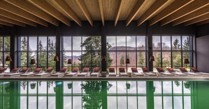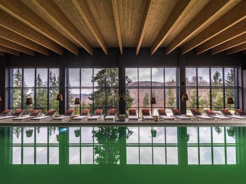 Informatii Hotel: 112 camere, 4 sli de conferinț, Parc de aventur, Restaurant, teras de var (220 locuri), Restaurant rustic (70 locuri), Lobby bar, Acces internet gratuit, Centru de închirieri biciclete, Grill party cu foc de tabr, Activitți outdoor, Saun și mofet umed în curtea hotelului, Loc de joac pentru copii