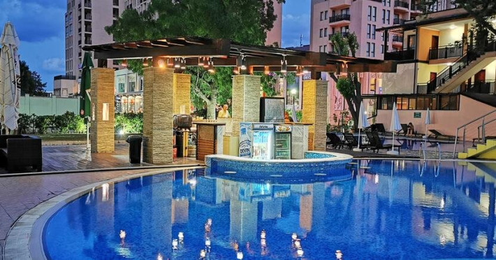 Localizare: Situat la 150 de metri de plaja si la 500 de metri de centrul statiunii. Facilitati hotel: Hotelul pune la dispozitia turistilor restaurant principal, restaurant a-la-carte, bar langa piscina, aer conditionat in locurile publice, schimb valutar, seif (contra cost), Wi-Fi in zonele commune, fier de calcat, facilitati generale pentru persoane cu handicap, parcare auto pazita (contra cost). Plaja publica cu nisip: umbrele de soare si sezlonguri (contra cost), la piscina: umbrele de soare si sezlonguri (gratuit).