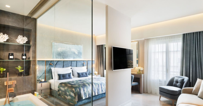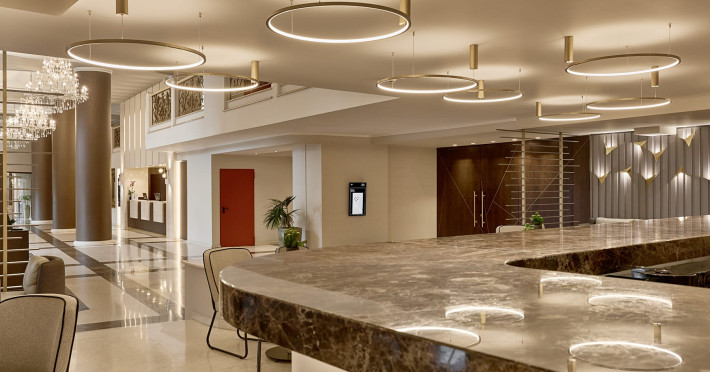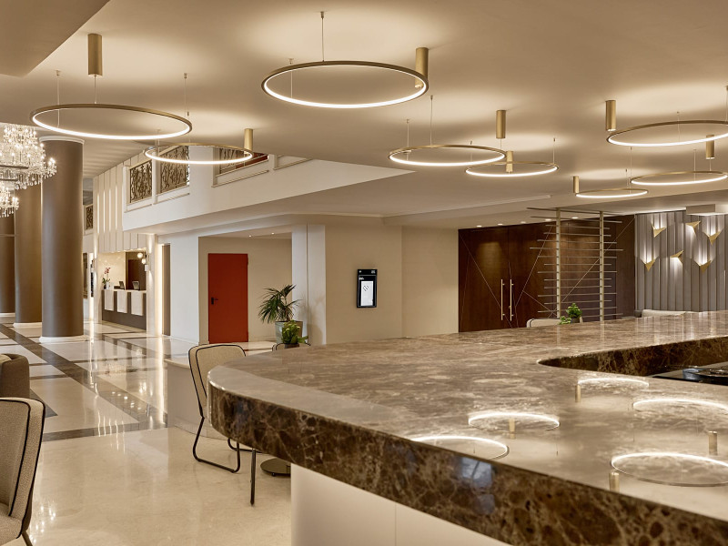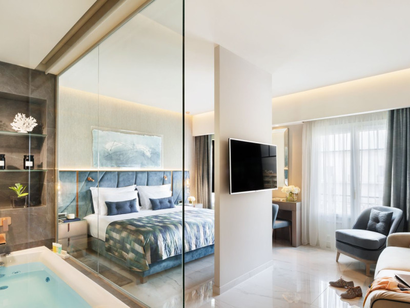 This hotel is situated by the western outskirts of Thessalonika, around 24 km from Macedonia airport. The harbour is located around 3 km away, whilst the centre as well as the train station is 1.5 km from the hotel. Established in 2004, this hotel comprises a total of 251 luxury rooms and 7 luxury suites. The lobby offers a reception desk, open 24 hours. The premises include a broad range of amenities such as a bar, a TV room, a restaurant and a conference room. There is parking for those arriving by car. Rooms and halls are equipped with state-of-the-art technology and guarantee to meet the needs of even the most demanding guest. There is also a pool situated in the outdoor complex. In addition, a sauna features within this hotel to help guests unwind.