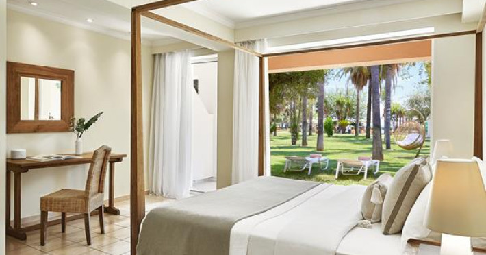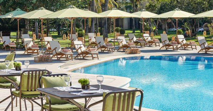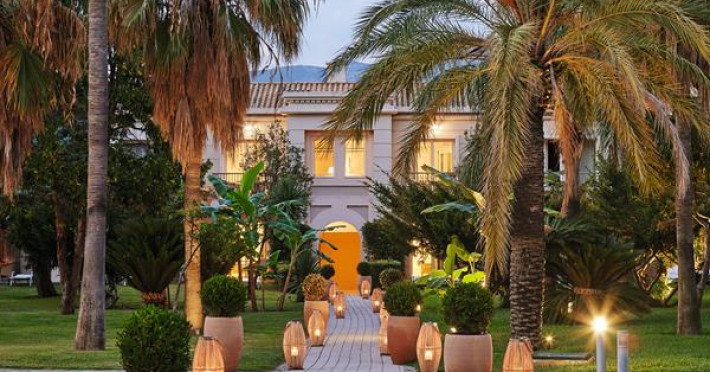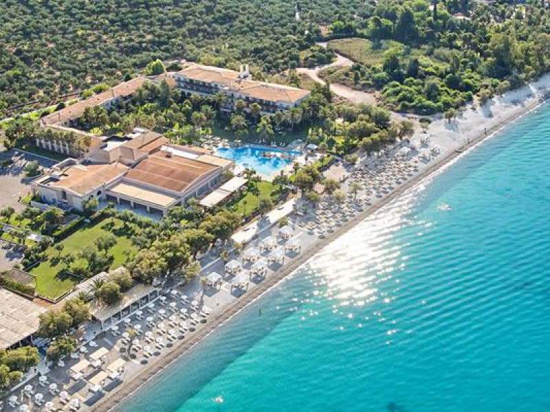 Located at the foot of the Taygetos Mountains on the outskirts of Kalamata, Filoxenia Hotel is surrounded by acres of green landscape and set in front of a beach with crystalline water. The hotel boasts luxury and elegant guest rooms with beautiful views, gourmet cuisine, 3 bars, including one on the beach, 3 pools and a tennis court. The hotel offers 188 luxury guestrooms with sea or garden view. Each is appointed with comfortable beds, working desks and marble bathrooms. Satellite TV, free Wi-Fi, are standard amenities of the rooms. The hotel comprises also a spa center with pool, steam bath and a wide range of beauty treatments. The restaurant offers delicious grilled meat, fresh seafood and authentic Greek cuisine, while enjoying the sun going down behind the mountains. Umbrellas, parking area and service on the beach complete the hotels facilities.