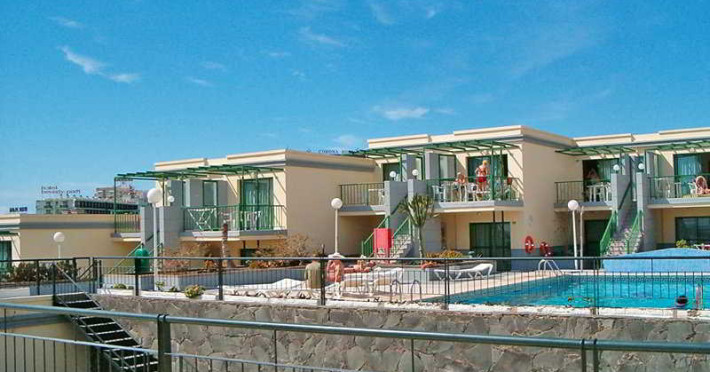 Small complex of only 64 apartments providing reception, small supermarket and a dining-room..Complex located about 300 m from a sandy bay entering Playa del Inglés..Apartments for 2 to 3 persons with bed-sitting room, kitchen, independent bedroom, bathroom with shower/WC, satellite television (extra charge), music, telephone, balcony or terrace and safe (extra charge)..Half board is offered..The hotel offers a swimming pool with solarium, pool-bar and childrens pool, childrens playground, billiards, table-tennis and games.