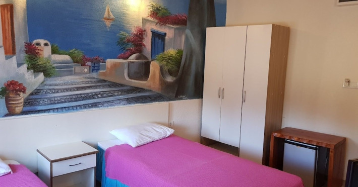 Near Bitez Beach. Located in Bodrum, Hakan Otel is a 1-minute drive from Bitez Beach and 6 minutes from Mausoleum at Halicarnassus. This beach hotel is 3.4 mi (5.5 km) from Bodrum Marina and 3.4 mi (5.6 km) from Camel Beach. Make yourself at home in one of the 19 air-conditioned rooms featuring minibars. Your bed comes with down comforters and Egyptian cotton sheets. Complimentary wireless internet access is available to keep you connected. Private bathrooms have designer toiletries and hair dryers. Enjoy a meal at the restaurant, or stay in and take advantage of the hotels room service (during limited hours). Mingle with other guests at the complimentary reception, held daily. Unwind at the end of the day with a drink at the bar/lounge or the poolside bar. A complimentary full breakfast is served daily from 9 AM to 11:30 AM. Dont miss out on recreational opportunities including a seasonal outdoor pool and bicycles to rent. Additional features at this hotel include complimentary wireless internet access, concierge services, and wedding services.