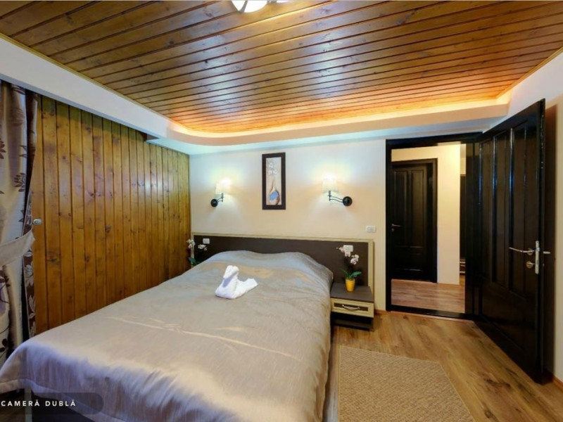 Hotelul Hillden lodge & restaurant ofera spatii de cazare in 15 camere spatioase (camera single, camera dubla, apartamente standard si apartamente junior) care vor asigura tot confortul unei sederi placute si relaxante. Nu trebuie sa-ti faci griji nici daca ai nevoie urgenta de un spatiu modern si discret pentru o intalnire de afaceri. Sala de conferinte poate gazdui fara probleme pana la 30 de persoane si este dotata cu videoproiector, flipchart, instalatie de sonorizare separata si conexiune la internet prin Wi-Fi. Cele mai pretioase lucruri pe care ti le ofera Hotel Hillden sunt insa frumusetile de pe valea Simonului si amintirile clipelor de neuitat pe care le vei petrece aici impreuna cu familia, prietenii sau partenerii, cu care vei avea ocazia sa admiri pe deplin padurile de brazi din zona, sau sa faci o excursie pe drumul forestier din apropiere. Cei ce au descoperit deja placerea drumetiei, cu siguranta vor aprecia vederea caselor simple taranesti, ospitalitatea deosebita a localnicilor si atmosfera placuta creata de ceilalti turisti. Complexul hotelier Hillden lodge&restaurant este situat in zona Bran Moeciu, la 5 km de centrul statiunii turistice Bran - pe valea Simon, intr-un splendid cadru natural inconjurat de dealuri impadurite si ofera oaspetilor sai o atmosfera eleganta si primitoare. Complexul Hotelier Hillden este o alegere perfecta de cazare ce iti ofera conditii excelente in ceea ce priveste linistea, confortul si relaxarea, iar restaurantul iti va incanta papilele gustative cu mancaruri rafinate, meniuri traditionale si bauturi pentru toate gusturile. Poti lua masa in salonul de fumatori sau in cel de nefumatori, iar in cazul in care preferi o masa in aer liber, poti alege terasa.