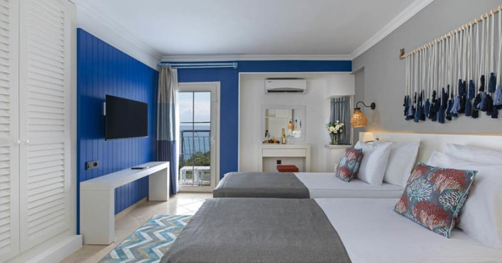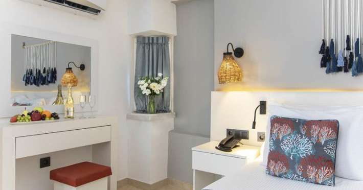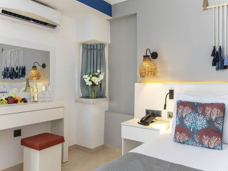 IN THE ROOMS: hot amp; cold split airconditioning, satelite tv, telephone, mini-bar ( extra of charge), hair dryer, safety deposit box (extra of charge), bathrooms with bathtub in the rooms hotel side , bathrooms with shower in the rooms club side, rooms has terrace or french balconies, with or without sea view.