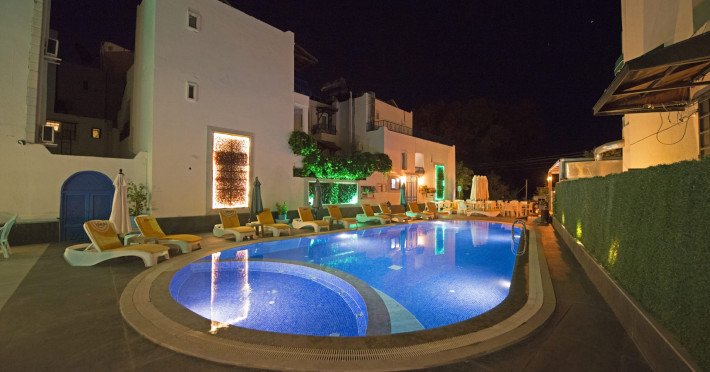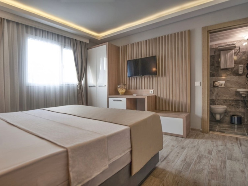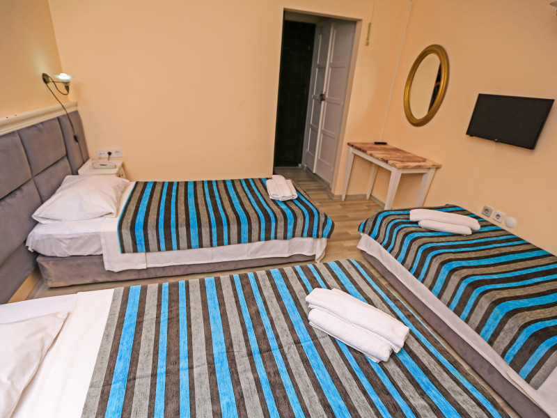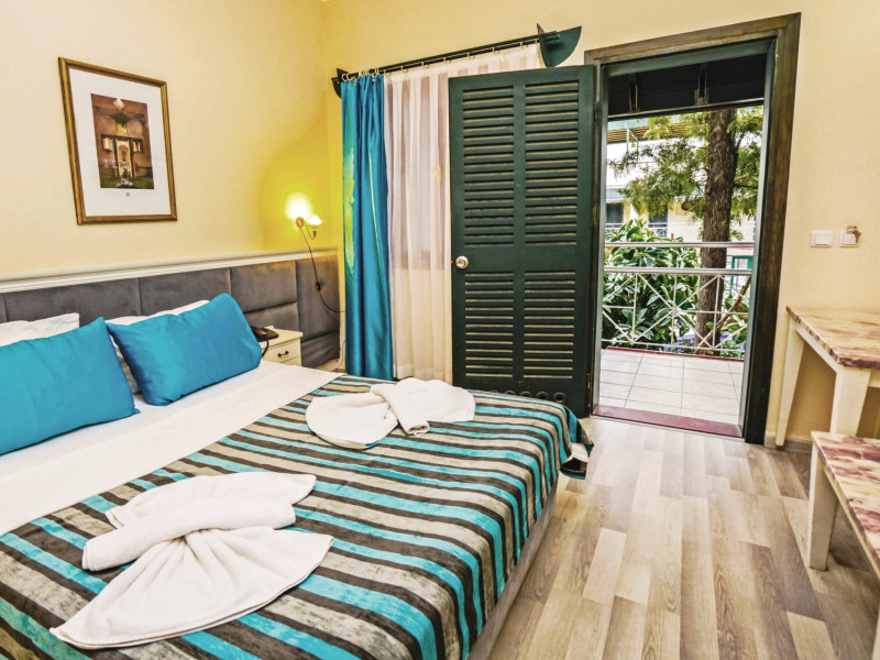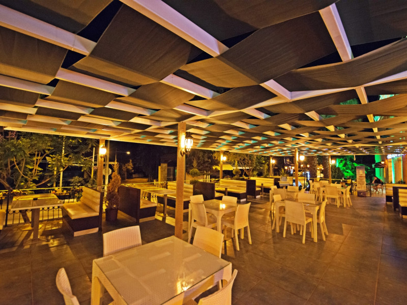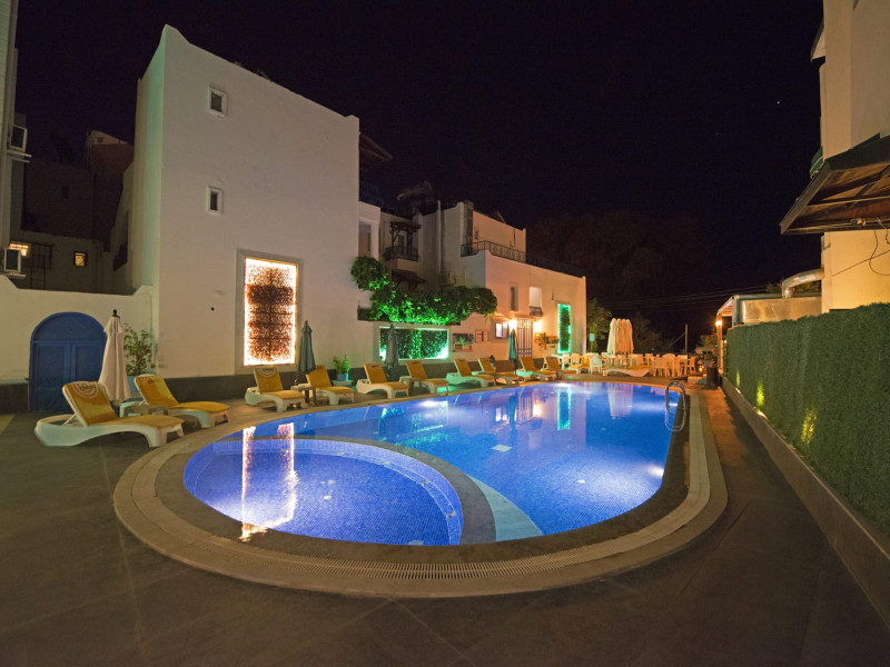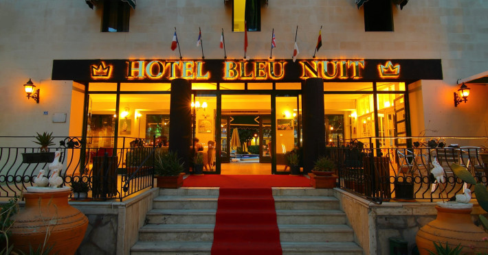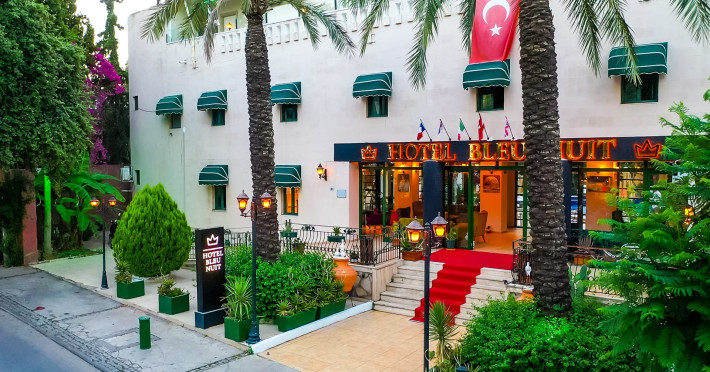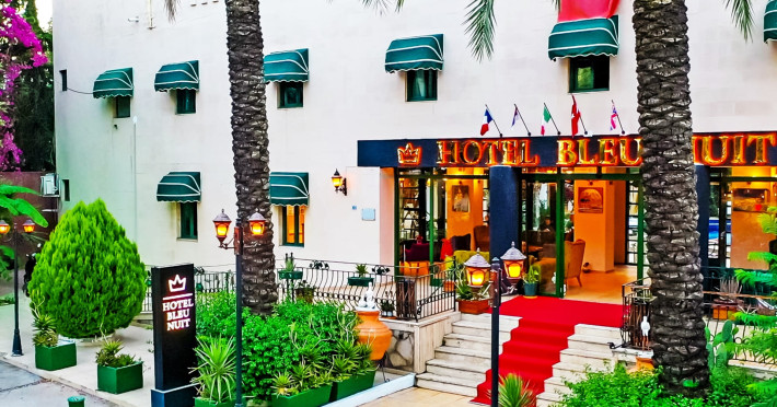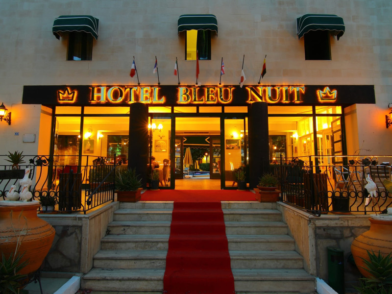 About 900 m from the hotels own sandy beach and approximately 700 m from the sea lies the hotel Hotel Bleu Nuit. The nearest bars and restaurants can be found at a distance of around 200 m. The city centre is around 3 km away. You can find a range oAbout 900 m from the hotels own sandy beach and approximately 700 m from the sea lies the hotel Hotel Bleu Nuit. The nearest bars and restaurants can be found at a distance of around 200 m. The city centre is around 3 km away. You can find a range of shops and a supermarket directly on your doorstep. Nearby there is a disco which offers entertainment in high season. The beach is awarded a blue flag, pets are allowed. Here, there are sun loungers, cushions, sun umbrellas and beach towels available. The air-conditioned halal hotel is equipped with a 24h reception (check-in is possible around the clock), a lobby, Wi-Fi, internet access, a first aid kit, parking spaces (limited) as well as a TV lounge with satellite TV. In the outdoor area you will find a garden as well as a supervised pool (open all year), where sun loungers, sun umbrellas and pool towels are available for free. There are also 2 separate childrens pools. Furthermore, you can relax outdoors on a terrace. You can store your valuables in the safe, and your luggage in the hotels storage room. In addition, the hotel Hotel Bleu Nuit is video-monitored 24h a day. For very young guests, kids chairs can be provided. There is also an ironing service. Ironing equipment can also be borrowed at the hotel. For your comfort the hotel page will ensure you are looked after. If necessary, you can contact the medical centre. For conventions and other business meetings, the hotel offers an auditorium with tables as well as printer. At the hotel reception, tickets are offered for excursions in the area. For guests on their honeymoon, the hotel has special offers such as a romantically-decorated room, sparkling wine, a basket of fruit or flowers in the room. In your hotel, a lot of focus is placed on sustainability. This includes the hotels own recycling bins, the provision of soap, shampoo and lotion dispensers, organic food and ecological meals, a central room air-conditioning and environmentally-friendly cleaning. That is why the hotel Hotel Bleu Nuit was also awarded a sustainability certificate. The hotel requires that all guests pay a deposit upon arrival. Euro/Master Card, JCB and EC cards are accepted as means of payment. Due to its barrier-free facilities , such as a hotel door that can be opened manually and wheelchair-accessible bathrooms, the hotel is also suitable for wheelchair users. Catering As catering services the hotel offers all-inclusive and self-catering. Breakfast is offered from the buffet. Lunch and dinner are also served from the buffet with starters, salads and desserts. As part of the all-inclusive service, water (24h) as well as coffee and tea (24h) are available at no extra charge. For the meals, there are a buffet restaurant with terrace (Mediterranean dishes) and a bar as well as the pool bar. The drinks menu of the hotel includes water, soft drinks, coffee and tea, beer and wine. Appropriate clothing is required for lunch and dinner. Distances Nearest town: approximately at 500 m Airport: approximately at 35 km Cinema: approximately at 2 km Taxi rank: approximately at 50 m Port: approximately at 1,5 km Theatre: approximately at 2 km Nearest doctor: approximately at 700 m Pharmacy: approximately at 100 m Hospital: approximately at 2 km Nearest bank: approximately at 2 km Nearest park: approximately at 10 m Sports amp; Leisure There is also a kindergarten in the hotel. In terms of adult entertainment, shows are organized in the evening. Additional information The 3-storey hotel, last renovated in 2019, has a total of 122 rooms. One of these rooms offers disabled access. The hotel staff speak English, German, French, Russian, Arabic and Turkish.