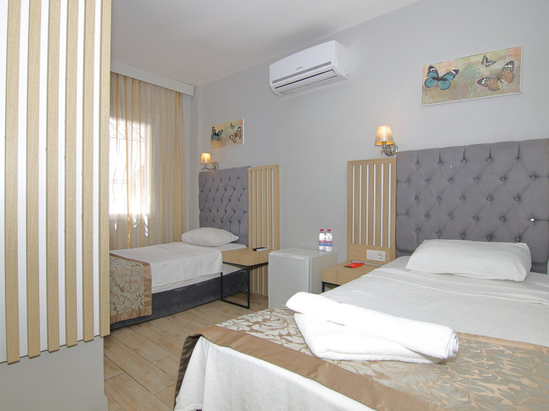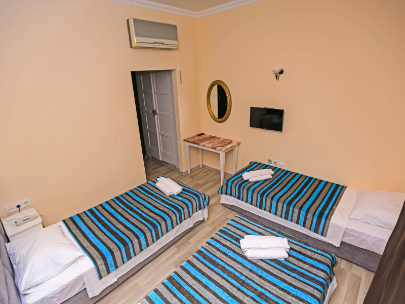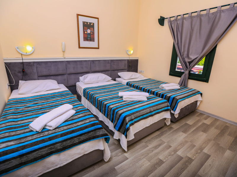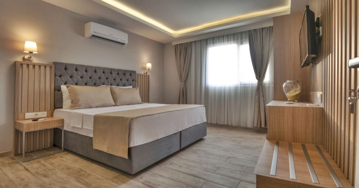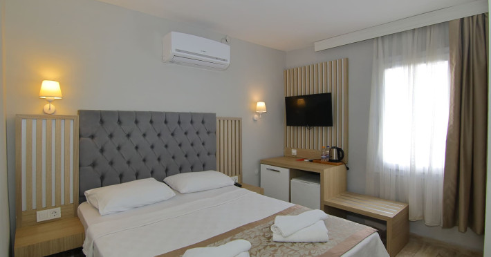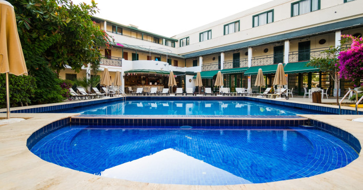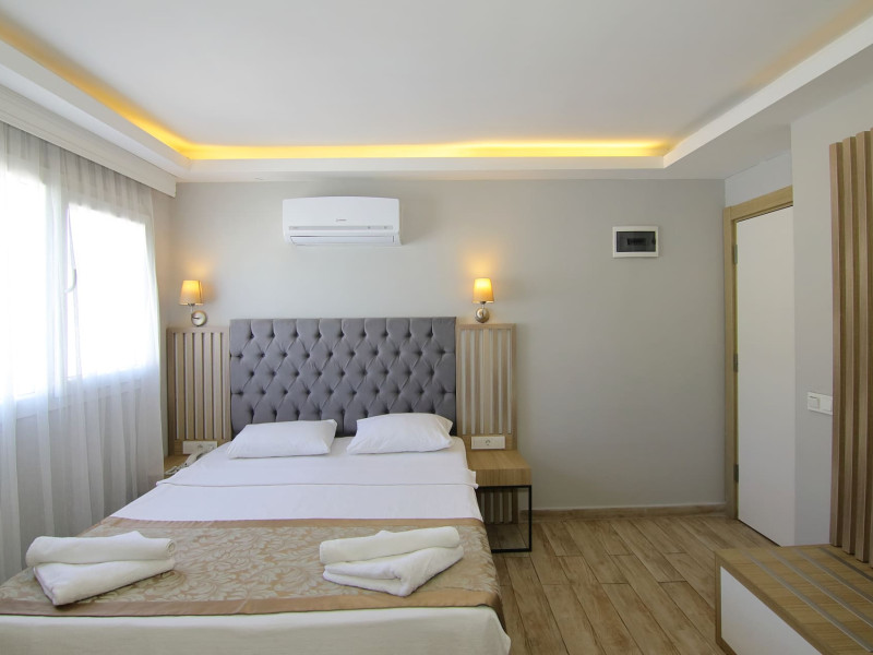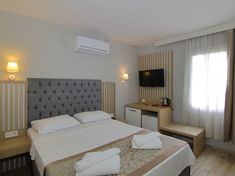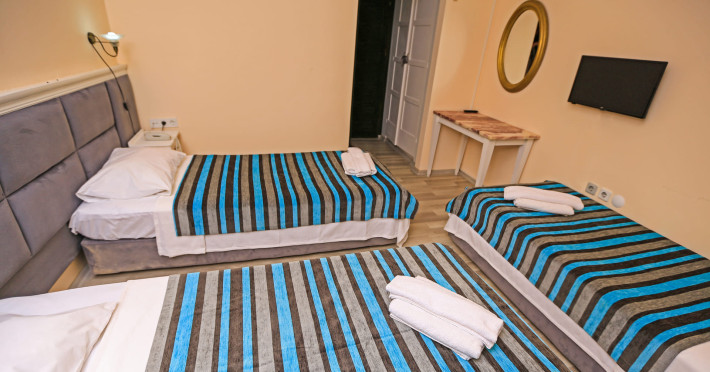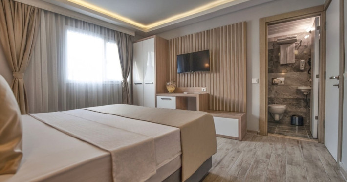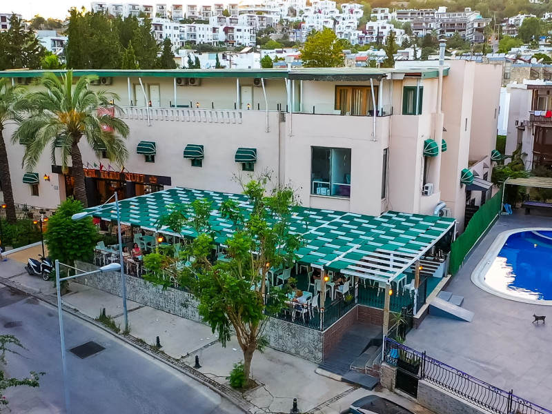 About 900 m from the hotels own sandy beach and approximately 700 m from the sea lies the hotel Hotel Bleu Nuit. The nearest bars and restaurants can be found at a distance of around 200 m. The city centre is around 3 km away. You can find a range oAbout 900 m from the hotels own sandy beach and approximately 700 m from the sea lies the hotel Hotel Bleu Nuit. The nearest bars and restaurants can be found at a distance of around 200 m. The city centre is around 3 km away. You can find a range of shops and a supermarket directly on your doorstep. Nearby there is a disco which offers entertainment in high season. The beach is awarded a blue flag, pets are allowed. Here, there are sun loungers, cushions, sun umbrellas and beach towels available. The air-conditioned halal hotel is equipped with a 24h reception (check-in is possible around the clock), a lobby, Wi-Fi, internet access, a first aid kit, parking spaces (limited) as well as a TV lounge with satellite TV. In the outdoor area you will find a garden as well as a supervised pool (open all year), where sun loungers, sun umbrellas and pool towels are available for free. There are also 2 separate childrens pools. Furthermore, you can relax outdoors on a terrace. You can store your valuables in the safe, and your luggage in the hotels storage room. In addition, the hotel Hotel Bleu Nuit is video-monitored 24h a day. For very young guests, kids chairs can be provided. There is also an ironing service. Ironing equipment can also be borrowed at the hotel. For your comfort the hotel page will ensure you are looked after. If necessary, you can contact the medical centre. For conventions and other business meetings, the hotel offers an auditorium with tables as well as printer. At the hotel reception, tickets are offered for excursions in the area. For guests on their honeymoon, the hotel has special offers such as a romantically-decorated room, sparkling wine, a basket of fruit or flowers in the room. In your hotel, a lot of focus is placed on sustainability. This includes the hotels own recycling bins, the provision of soap, shampoo and lotion dispensers, organic food and ecological meals, a central room air-conditioning and environmentally-friendly cleaning. That is why the hotel Hotel Bleu Nuit was also awarded a sustainability certificate. The hotel requires that all guests pay a deposit upon arrival. Euro/Master Card, JCB and EC cards are accepted as means of payment. Due to its barrier-free facilities , such as a hotel door that can be opened manually and wheelchair-accessible bathrooms, the hotel is also suitable for wheelchair users. Catering As catering services the hotel offers all-inclusive and self-catering. Breakfast is offered from the buffet. Lunch and dinner are also served from the buffet with starters, salads and desserts. As part of the all-inclusive service, water (24h) as well as coffee and tea (24h) are available at no extra charge. For the meals, there are a buffet restaurant with terrace (Mediterranean dishes) and a bar as well as the pool bar. The drinks menu of the hotel includes water, soft drinks, coffee and tea, beer and wine. Appropriate clothing is required for lunch and dinner. Distances Nearest town: approximately at 500 m Airport: approximately at 35 km Cinema: approximately at 2 km Taxi rank: approximately at 50 m Port: approximately at 1,5 km Theatre: approximately at 2 km Nearest doctor: approximately at 700 m Pharmacy: approximately at 100 m Hospital: approximately at 2 km Nearest bank: approximately at 2 km Nearest park: approximately at 10 m Sports amp; Leisure There is also a kindergarten in the hotel. In terms of adult entertainment, shows are organized in the evening. Additional information The 3-storey hotel, last renovated in 2019, has a total of 122 rooms. One of these rooms offers disabled access. The hotel staff speak English, German, French, Russian, Arabic and Turkish.