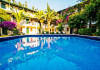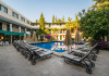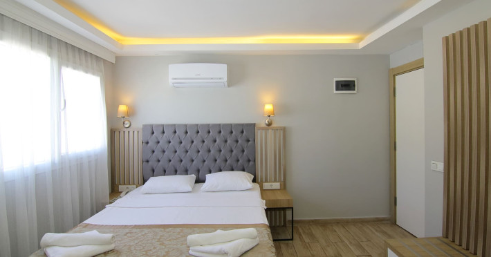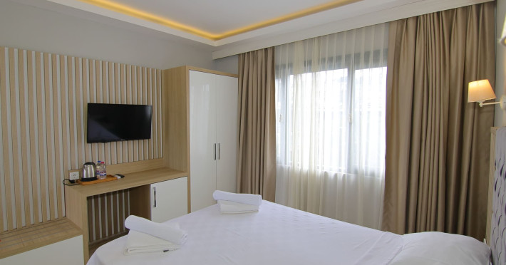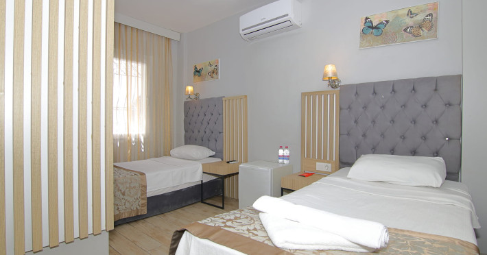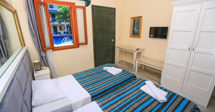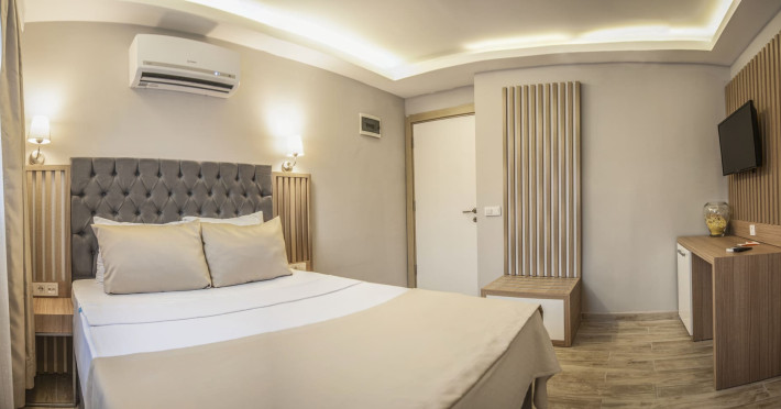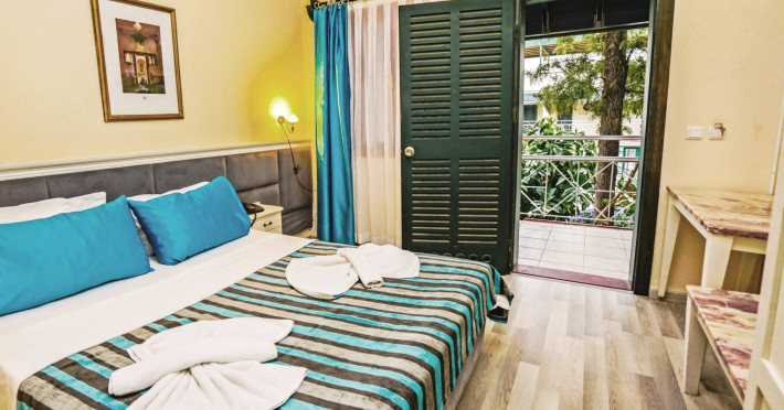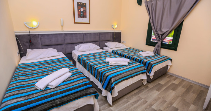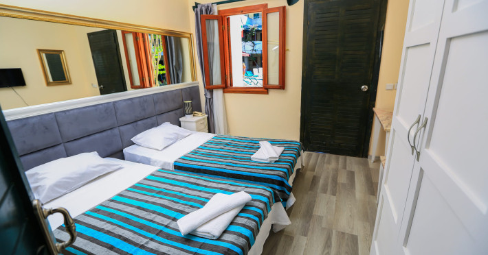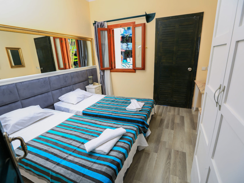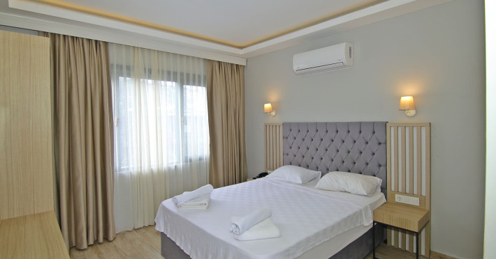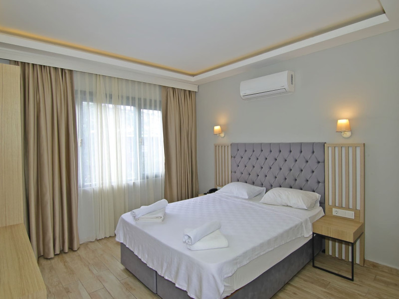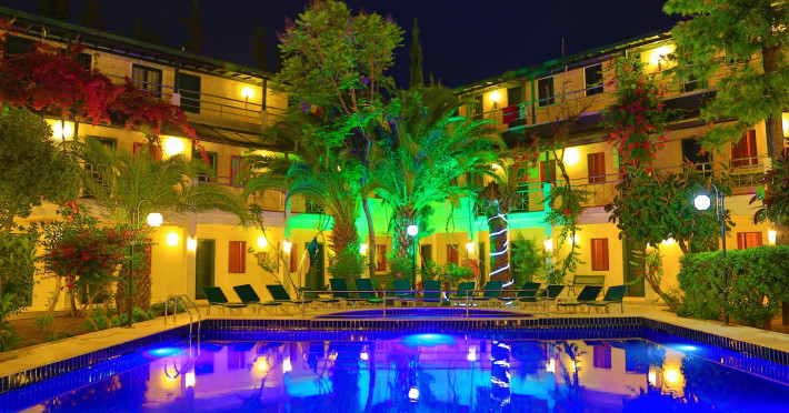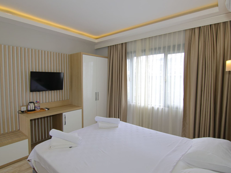 About 900 m from the hotels own sandy beach and approximately 700 m from the sea lies the hotel Hotel Bleu Nuit. The nearest bars and restaurants can be found at a distance of around 200 m. The city centre is around 3 km away. You can find a range oAbout 900 m from the hotels own sandy beach and approximately 700 m from the sea lies the hotel Hotel Bleu Nuit. The nearest bars and restaurants can be found at a distance of around 200 m. The city centre is around 3 km away. You can find a range of shops and a supermarket directly on your doorstep. Nearby there is a disco which offers entertainment in high season. The beach is awarded a blue flag, pets are allowed. Here, there are sun loungers, cushions, sun umbrellas and beach towels available. The air-conditioned halal hotel is equipped with a 24h reception (check-in is possible around the clock), a lobby, Wi-Fi, internet access, a first aid kit, parking spaces (limited) as well as a TV lounge with satellite TV. In the outdoor area you will find a garden as well as a supervised pool (open all year), where sun loungers, sun umbrellas and pool towels are available for free. There are also 2 separate childrens pools. Furthermore, you can relax outdoors on a terrace. You can store your valuables in the safe, and your luggage in the hotels storage room. In addition, the hotel Hotel Bleu Nuit is video-monitored 24h a day. For very young guests, kids chairs can be provided. There is also an ironing service. Ironing equipment can also be borrowed at the hotel. For your comfort the hotel page will ensure you are looked after. If necessary, you can contact the medical centre. For conventions and other business meetings, the hotel offers an auditorium with tables as well as printer. At the hotel reception, tickets are offered for excursions in the area. For guests on their honeymoon, the hotel has special offers such as a romantically-decorated room, sparkling wine, a basket of fruit or flowers in the room. In your hotel, a lot of focus is placed on sustainability. This includes the hotels own recycling bins, the provision of soap, shampoo and lotion dispensers, organic food and ecological meals, a central room air-conditioning and environmentally-friendly cleaning. That is why the hotel Hotel Bleu Nuit was also awarded a sustainability certificate. The hotel requires that all guests pay a deposit upon arrival. Euro/Master Card, JCB and EC cards are accepted as means of payment. Due to its barrier-free facilities , such as a hotel door that can be opened manually and wheelchair-accessible bathrooms, the hotel is also suitable for wheelchair users. Catering As catering services the hotel offers all-inclusive and self-catering. Breakfast is offered from the buffet. Lunch and dinner are also served from the buffet with starters, salads and desserts. As part of the all-inclusive service, water (24h) as well as coffee and tea (24h) are available at no extra charge. For the meals, there are a buffet restaurant with terrace (Mediterranean dishes) and a bar as well as the pool bar. The drinks menu of the hotel includes water, soft drinks, coffee and tea, beer and wine. Appropriate clothing is required for lunch and dinner. Distances Nearest town: approximately at 500 m Airport: approximately at 35 km Cinema: approximately at 2 km Taxi rank: approximately at 50 m Port: approximately at 1,5 km Theatre: approximately at 2 km Nearest doctor: approximately at 700 m Pharmacy: approximately at 100 m Hospital: approximately at 2 km Nearest bank: approximately at 2 km Nearest park: approximately at 10 m Sports amp; Leisure There is also a kindergarten in the hotel. In terms of adult entertainment, shows are organized in the evening. Additional information The 3-storey hotel, last renovated in 2019, has a total of 122 rooms. One of these rooms offers disabled access. The hotel staff speak English, German, French, Russian, Arabic and Turkish.
