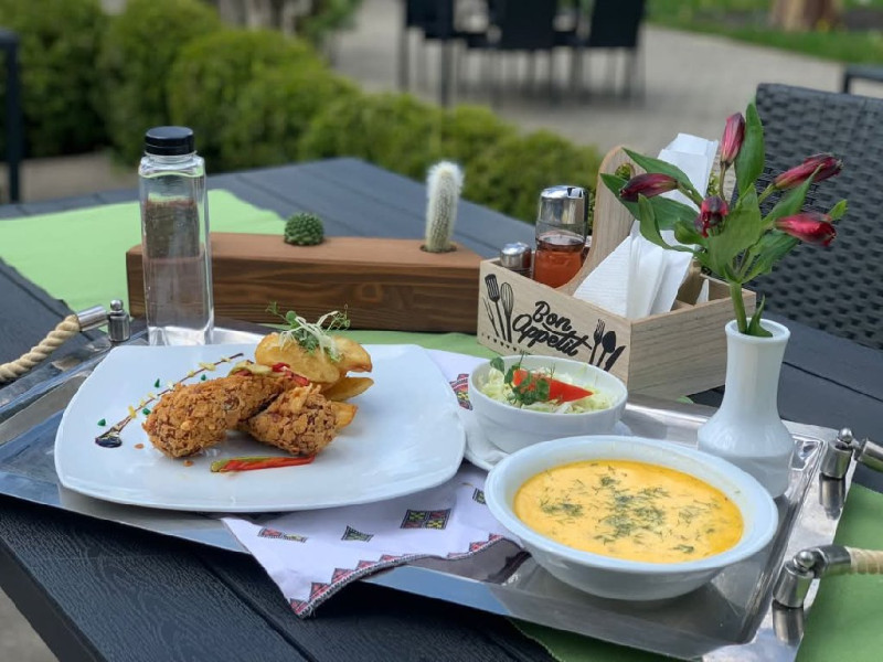 Restaurant de 200 de locuri, bar receptie, lobby bar, wellness bar, crama.
