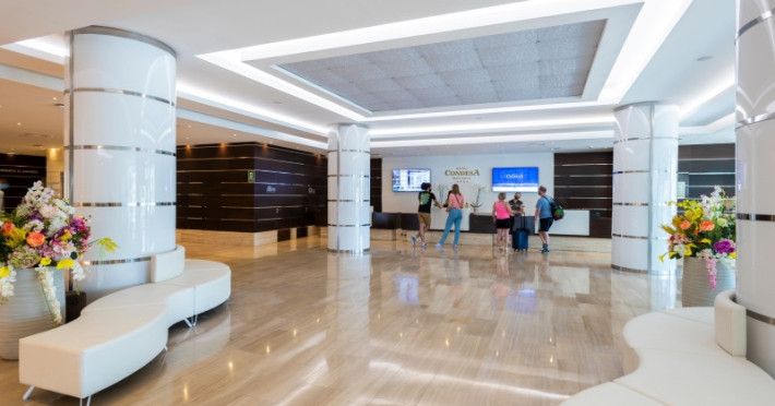 Hotelul Condesa este situat langa plaja. Centrul statiunii se afla la 5 km departare. Hotelul are aer conditionat, receptie 24h, Wi-Fi, supermarket, parcare, gradina, piscina exterioara cu sezlonguri si umbrele de soare, piscina pentru copii cu tobogan, terasa pentru plaja pe acoperis, camera bagaje, restaurant bufet cu terasa, bar la piscina, sala fitness, cursuri de aerobic, biliard, darts, tenis de masa, volei, zona spa, miniclub, spectacole de seara. Alte informatii: Pentru statiunile din nord si est, transferul inclus in pachet este tip shuttle cu timp de asteptare aproximativ o ora. La cerere si contra cost se poate opta pentru transfer privat. Asistenta turistica este telefonica pentru un numar de pasageri mai mic de 20 de persoane. Excursii optionale de grup nu se pot organiza cu plecare din statiunile din zonele nord si est! Web: www.hotelcondesa.com