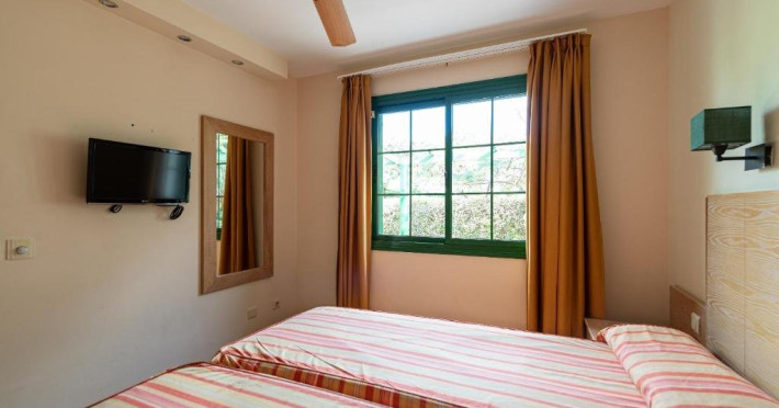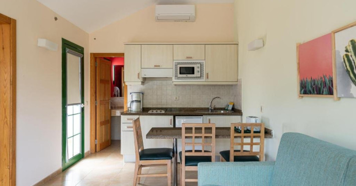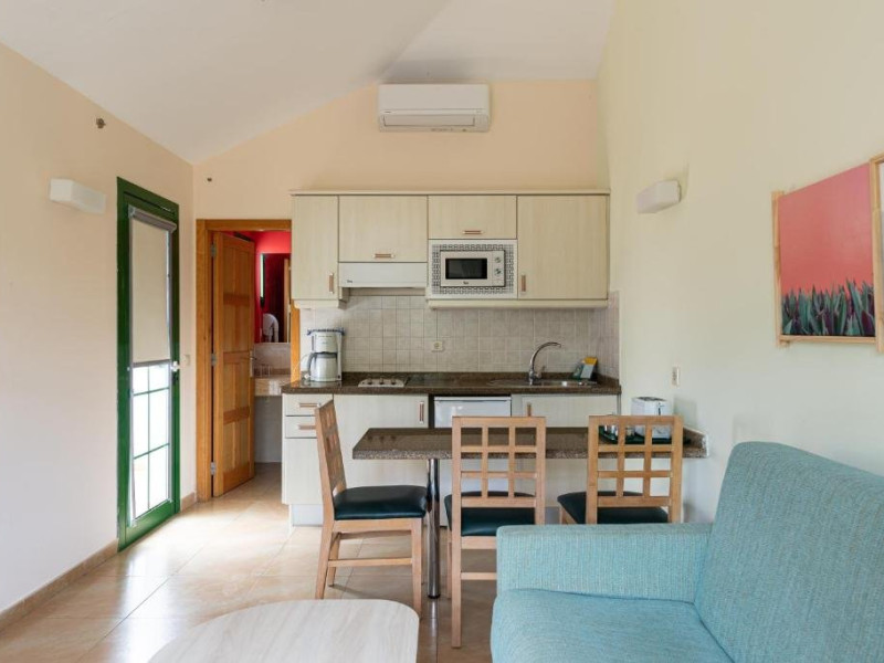 Dotari camera:Bungalowurile primitoare sunt mobilate cu o camera de zi/dormitor combinata, o baie proprie, un telefon cu disc direct, televiziune prin satelit/cablu (taxe suplimentare), o chicineta cu frigider, o camera separata, ventilatoare de tavan, un seif de inchiriat si o terasa mobilata. Este disponibil un serviciu de curatenie finala. Pagina Web: https://www.becordial.com/en/gran-canaria-south/bungalows-cordial-sandy-golf/