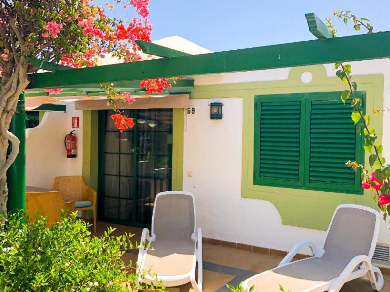 Descriere: Bungalourile se afla in vechiul oras turistic Maspalomas, fiind situate ideal aproape de terenul de golf si la numai 2 km de rezervatia natural spectaculoas Dunas de Maspalomas. Localizare: Amplasat langa terenul de golf al localitatii Maspalomas, la 2 km de spectaculoasele Dune Maspalomas si la doar cateva minute de Centrul Comercial Faro 2. Facilitati:Este oferita o naveta gratuita catre plaja Maspalomas si centrul orasului Playa del Ingles. Facilitati de golf si tenis in apropiere (cu taxa). Acest complex este format din 128 de bungalouri la nivelul solului. Diverse facilitati sunt disponibile pentru oaspeti, inclusiv un hol cu o receptie deschisa intre 8.00 dimineata si miezul noptii, o cafenea, un bar si un restaurant cu terasa. In complex, exista si un loc de joaca, un supermarket mic si facilitati de parcare. Oaspetii se pot relaxa, de asemenea, in gradinile minunate si intinse. Hotelul are o piscina incalzita cu o piscina separata pentru copii, inconjurata de o terasa si gazon, precum si un bar cu gustari. Cei pasionati de sport pot profita de apropiatul centru de tenis Dunaflor si pot utiliza sala de sport. De asemenea, este posibil sa jucati squash. In apropierea hotelului se afla un teren de golf. Programul de divertisment sezonier completeaza oferta hotelului. Oaspetii sunt invitati sa se serveasca singuri din bufetul de mic dejun. Mesele de seara pot fi alese din meniurile fixe. Este, de asemenea, posibil sa rezervati cazare cu demipensiune sau mic dejun inclus. Receptia este deschisa intre orele 10 dimineata si 6 seara; sosirea in afara acestor ore se face la cladirea opusa: Green Golf. Mesele sunt, de asemenea, in acel complex.