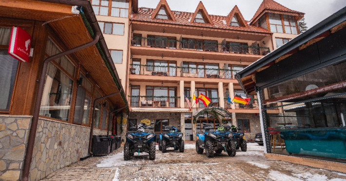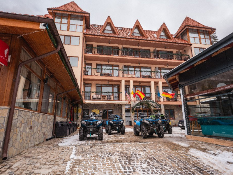 Hotelul mai dispune de : Parcare auto monitorizata video,Lift ultramodern ,doua bazine cu peste amenajate, formate din captarea unui izvor ,gradina ,conexiune Wi-Fi in spatiile comune, restaurant si sala de evenimente ,alarma de urgenta in toate baile,galerie de arta-expozitie cu vanzare permanenta ,transport/transfer auto.