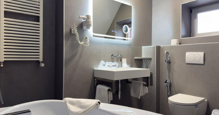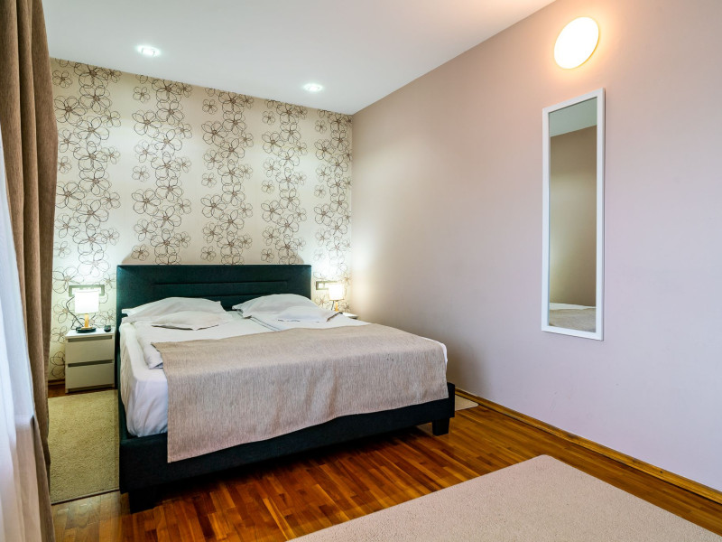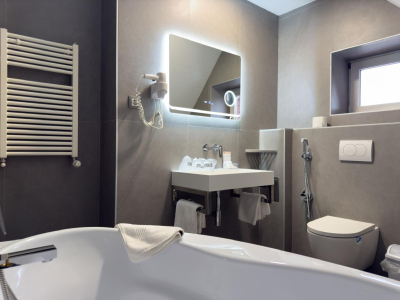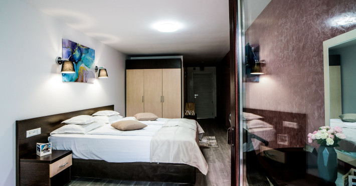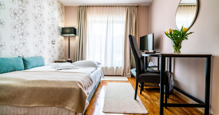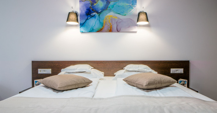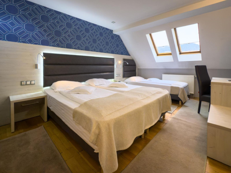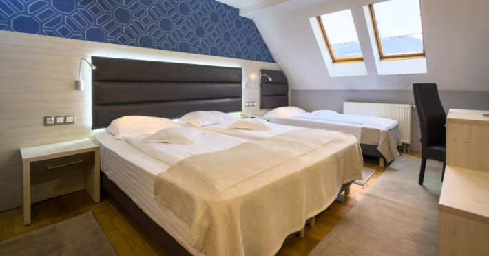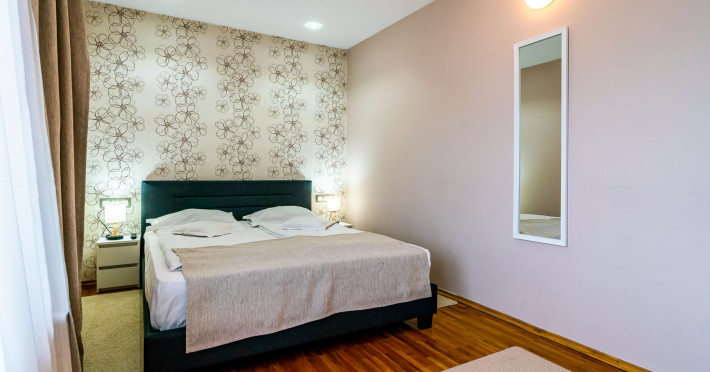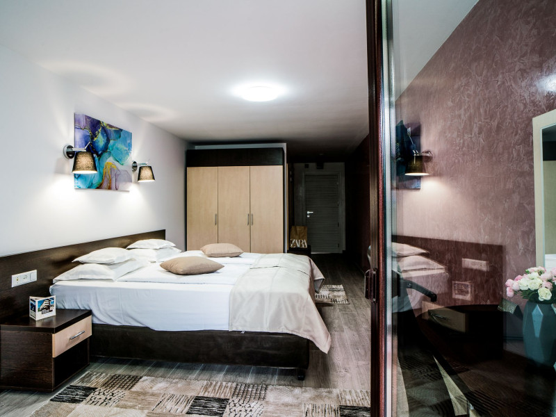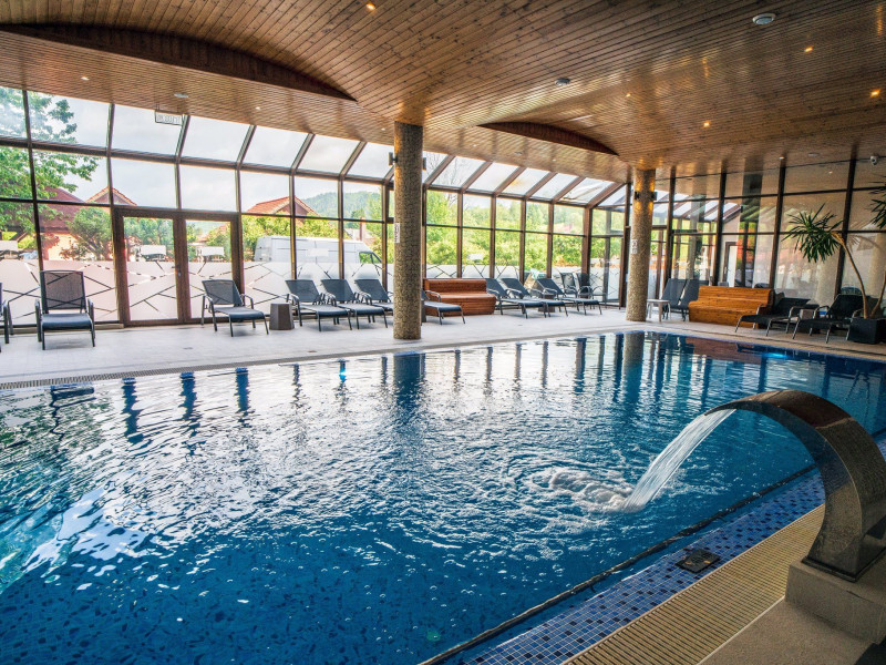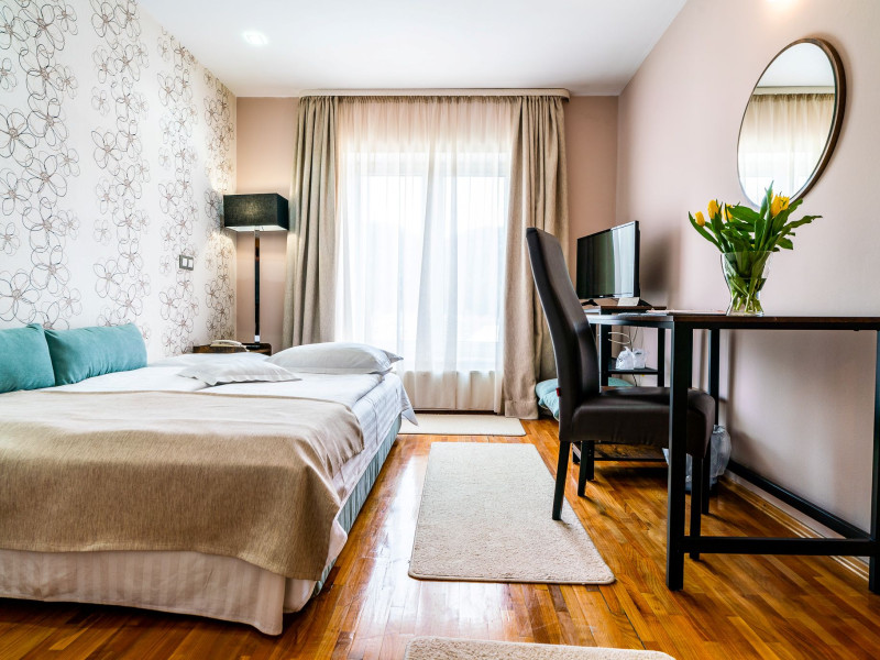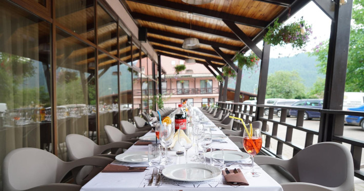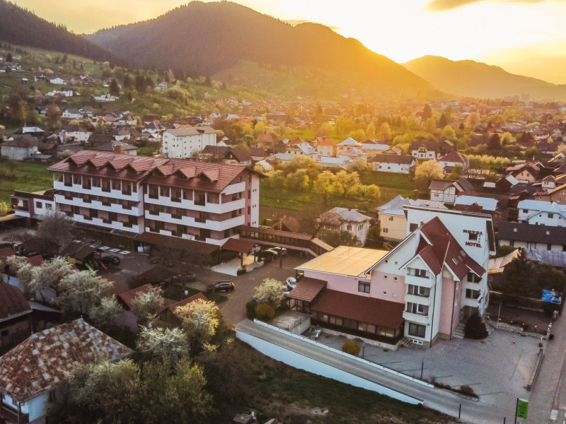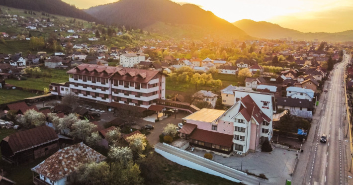 Capacitatea de cazare 3* â 76 locuri: 2 camere single hotel 3*, 2 camere duble (twin) hotel 3*, 6 camere duble (twin) hotel 3* superior cu balcon si vedere la munte modernizate in anul 2020, 2 camere duble hotel 3* superior modernizate in anul 2020, 3 camere triple hotel 3* superior cu balcon modernizate in anul 2020, 5 camere triple 3 * superior modernizate in anul 2020, 2 apartamente hotel 3* superior cu balcon, 2 camere (4 pers.), modernizate in anul 2020 , 8 bungalow-uri : 2 cu 2 camere cu baie (cada) si 6 cu 1 camera dotate cu baie (dus) renovate integral iunie 2025. Camerele si bungalow-urile dispun de TV cablu, frigobar, uscator par, bai separate cu dus (cada cu hidromasaj), telefon, retea wireless (gratuit).