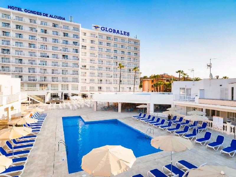 Hotelul Globales Condes de Alcudia este situat la aproximativ 150 de metri de plaja. Hotelul are receptie 24h, lobby bar, Wi-Fi, gradina, piscina exterioara cu sezlonguri si umbrele de soare, piscina pentru copii, loc de joaca, restaurant bufet, bar la piscina, biliard, tir cu arcul, darts, tenis de masa, miniclub. Alte informatii: Pentru statiunile din nord si est, transferul inclus in pachet este tip shuttle cu timp de asteptare aproximativ o ora. La cerere si contra cost se poate opta pentru transfer privat. Asistenta turistica este telefonica pentru un numar de pasageri mai mic de 20 de persoane. Excursii optionale de grup nu se pot organiza cu plecare din statiunile din zonele nord si est! Web: www.hotelesglobales.com