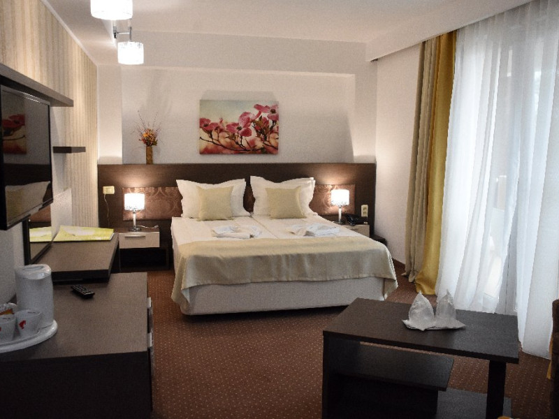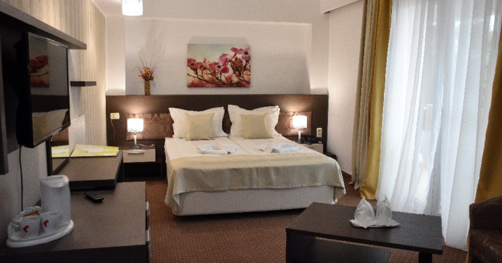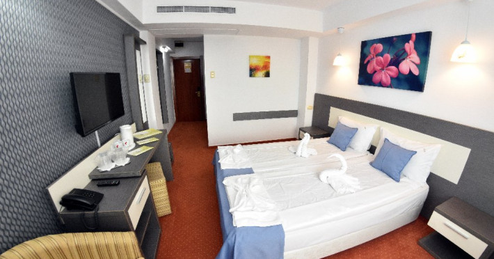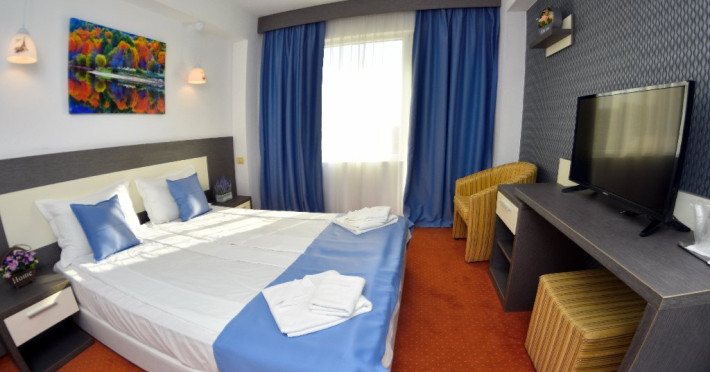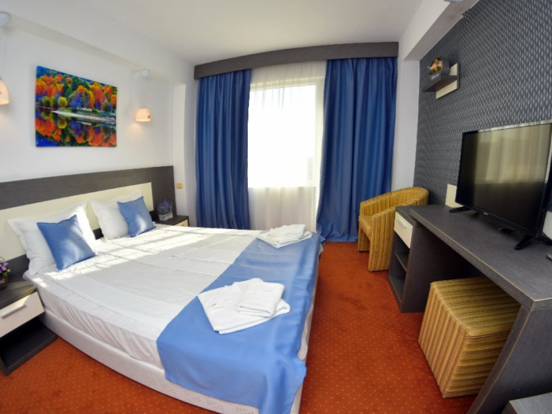 Localizare:Hotelul este situat la 20 m de plaja. Prin arhitectura, constructie si pozitionare, camerele beneficiaza de vedere la mare sau catre lacul Tismana . Camerele hotelului Olimpic sunt renovate integral si sunt dotate cu mobilier nou, sistem de acces pe baza de cartela magnetica , aer conditionat centralizat , Wifi, TV LCD si cablu, minibar, telefon, seif, fierbator ceai/cafea, baie proprie cu cabina de dus , uscator de par si balcon. Camerele family sunt localizate la etajul 1 au pat matrimonial si pat pentru copil.