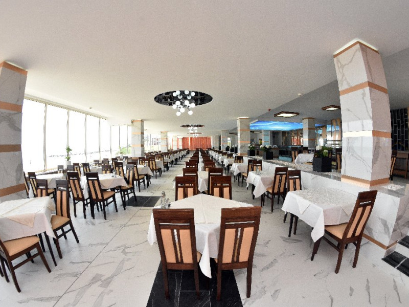 Restaurantul hotelului se afla in imediata vecinatate a plajei si serveste o gama variata de preparate culinare inspirate din bucataria romaneasca si internationala, produse de patiserie si cofetarie si dispune (in limita disponibilitatii) de scaune speciale pentru copii.
