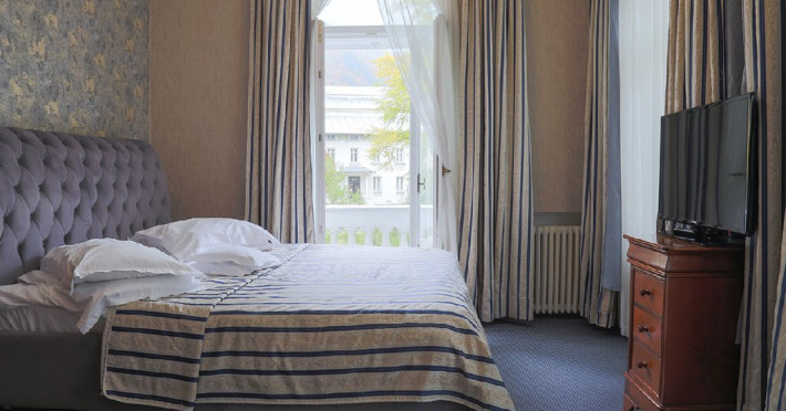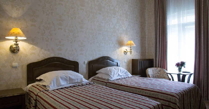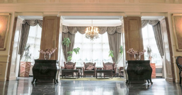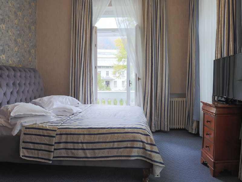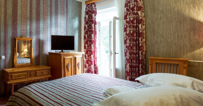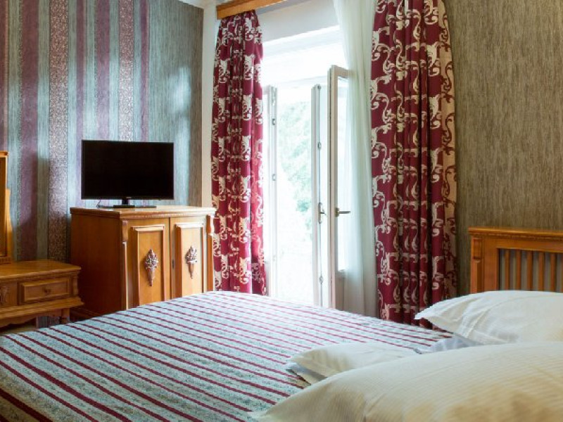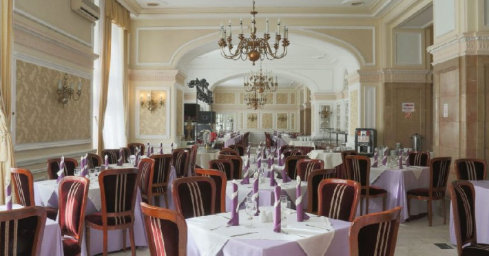 Amplasare: Hotelul Palace este situat in parcul central al statiunii, Parcul Ghica, la 200 metri de centrul statiunii Sinaia. Dotari hotel Hotelul dispune de locuri la categoria 4 stele si la categoria 3 stele, sali de conferinta, seif pentru pastrarea obiectelor de valoare, bar de zi, schimb valutar, terase de vara, discoteca, room-service, frizerie-coafura, inchirieri masini, parcare. Dotari camere Camerele sunt dotate cu minibar, legaturi telefonice internationale directe, televiziune prin cablu, acces la internet Alte servicii Serviciile de masa se asigura in incinta restaurantului propriu. Piscina contra cost aprox 10 euro/ adult si 5 euro/ copil