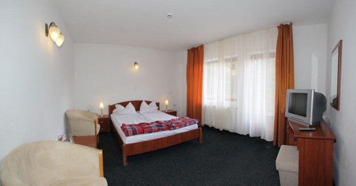Hotelul dispune de 47 locuri de cazare dupa cum urmeaza: 2 camere duble matrimoniale, 14 duble cu paturi separate, 3 apartamente cu pat matrimonial si camera separata cu loc de luat masa incluzand o canapea cu doua locuri de dormit si o camera tripla.