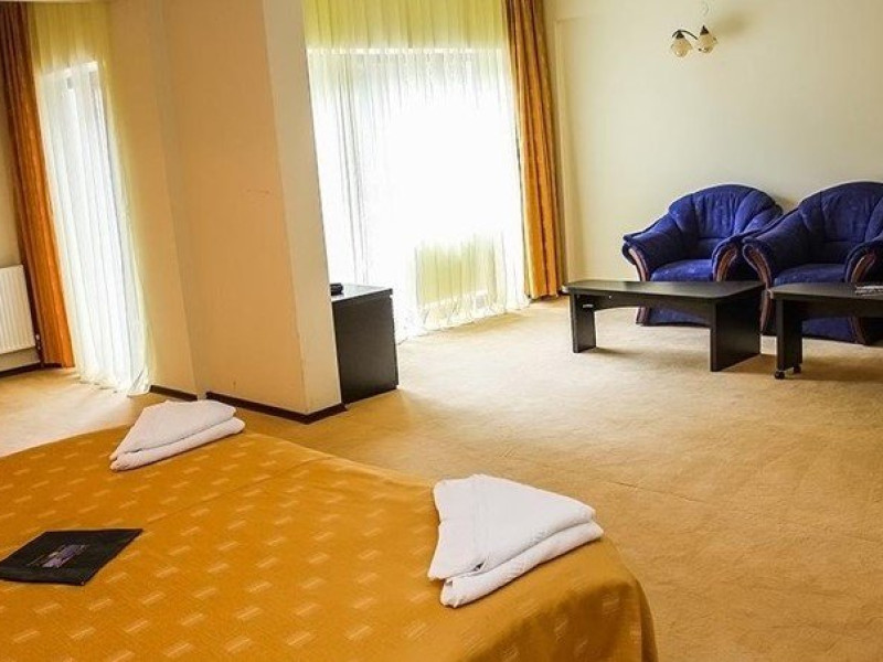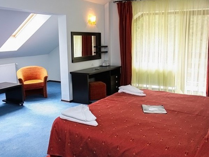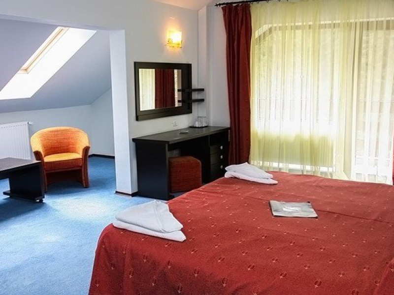 Complexul Hotelier Poiana Ursului 3* este amplasat intr-o zona linistita a statiunii, in apropierea Complexului Favorit si nu departe de partiile de schi si de principalele mijloace de transport pe cablu, hotelul iese in evidenta prin arhitectura unica si confortul deosebit al camerelor. In mijlocul naturii, intr-o oaza din imparatia muntilor, complexul hotelier POIANA URSULUI este destinatia ideala de vacanta sau pentru organizarea unor intalniri de afaceri sau evenimente festive, in orice anotimp. Amplasat la 35 minute de centrul istoric si comercial al Brasovului, la o distanta de 12km, insa ferit de agitatia orasului, hotelul se remarca prin dotari de exceptie. Imbinand eleganta si utilitatea, hotelul ofera clientilor sai servicii de calitate si conditii deosebite de cazare.