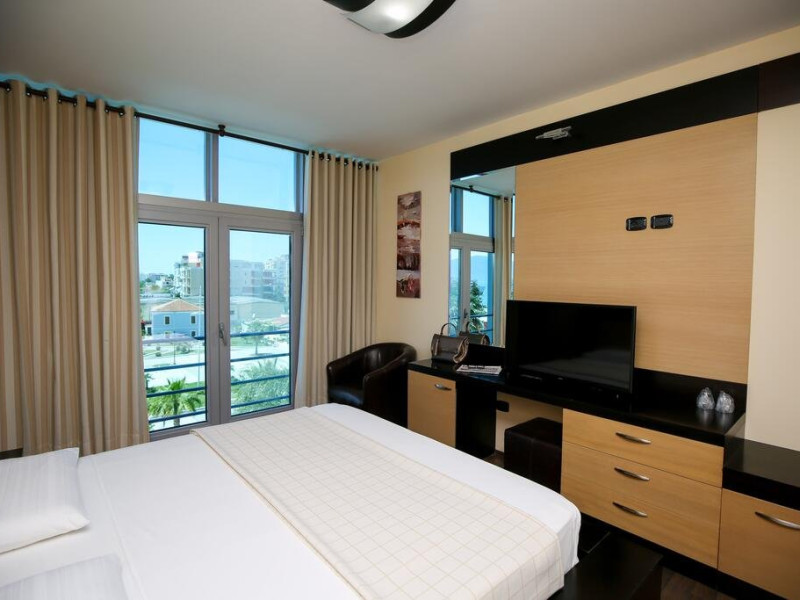 Localizare: Rruga Ismail Qemali, 9400 Vlore, Albania Facilitati camere: AC, TV, baie cu dus si uscator de par, wi fi. Facilitati hotel: parcare, restaurant, bar, piscina, centru spa, terasa. Pagina web: https://vlora-international.com