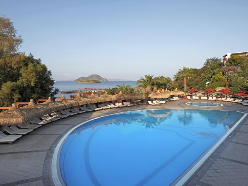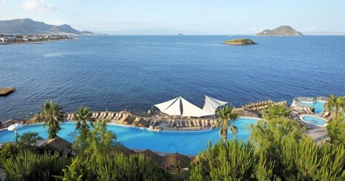 Kadıkale Resort features a spa offering aromatherapy treatments and 5 swimming pools, one with a minipark. Located outside Turgutreis, it has a private beach lined with beach tents. All rooms are decorated in warm tropical colours and feature a balcony fitted with patio furniture. Each air-conditioned room has a minibar and satellite TV. Aquarium restaurant has a terrace setting overlooking the Aegean Sea and serves international and local cuisine for dinner. Local beers, international wines and other beverages are available at Kadıkaleâs 4 bars. Guests can make use of the complimentary boats and watersports and take part in canoeing or windsurfing activities. The hotel also provides a shuttle service to Bodrum. Kadıkale Resort is 3 km from Turgutreis city centre and less than 20 km from Bodrum city centre.