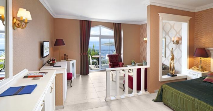 8 king suite: 2 bedrooms amp; 1 living room,1 bathroom,individual air-condition , balcony or terrace , seaview,mini bar , hairdryer , satellite tv , safe box , direct dial telephone, jakuzi.