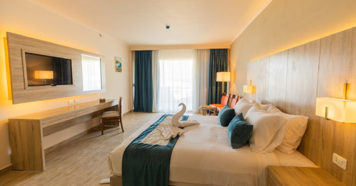 Facilitati hotel: Hotelul pune la dispozitia turistilor: receptie 24h, restaurant principal, restaurante a la carte, divere baruri, club pentru copii, teren de joaca pentru copii, animatori, teren de volei, darts, biliard, 4 piscine, inclusiv aquapark si piscina pentru copii, zona de plaja privata cu sezlonguri si umbrele, divertisment zilnic, scufundari, snorkeling, teren de volei, teren de fotbal, biliard, club.