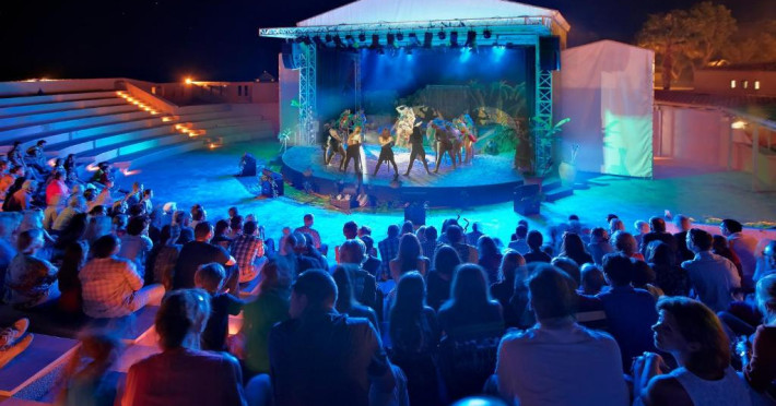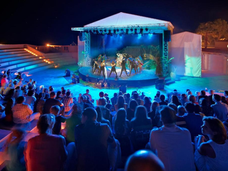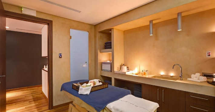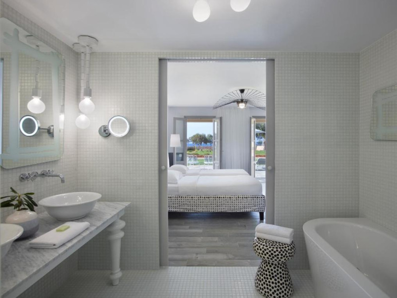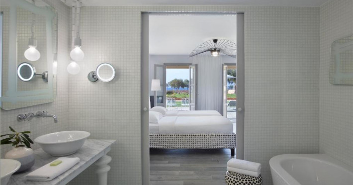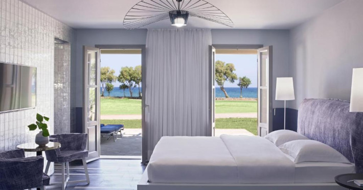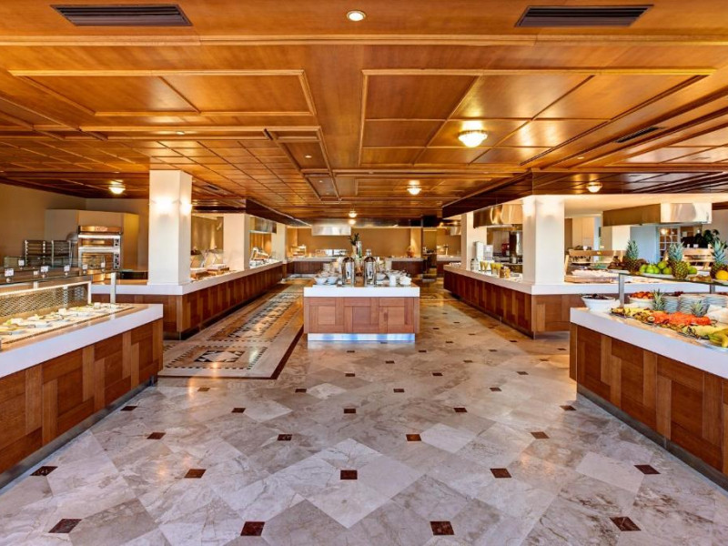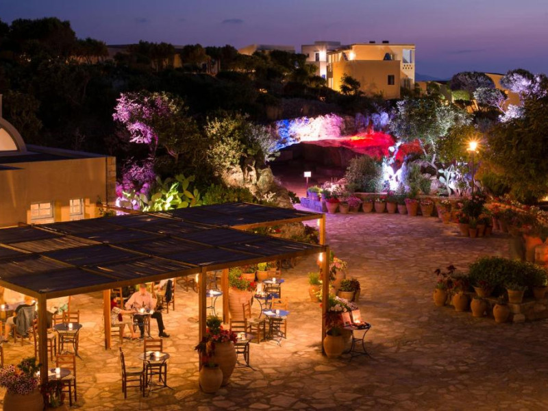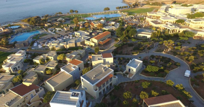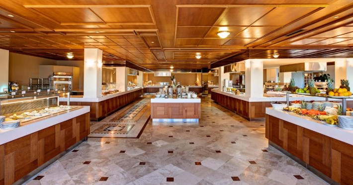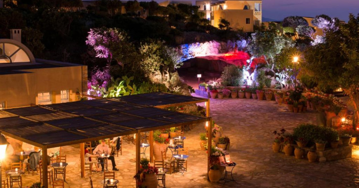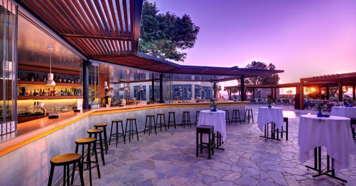 Restaurantul principal are vedere la mare și servește preparate mediteraneene și internaționale. Oaspetii pot savura băuturi, cocktailuri si inghetată intr-unul din barurile complexului, printre care se numără un bar amplasat pe plajă si o cafenea grecească traditională.