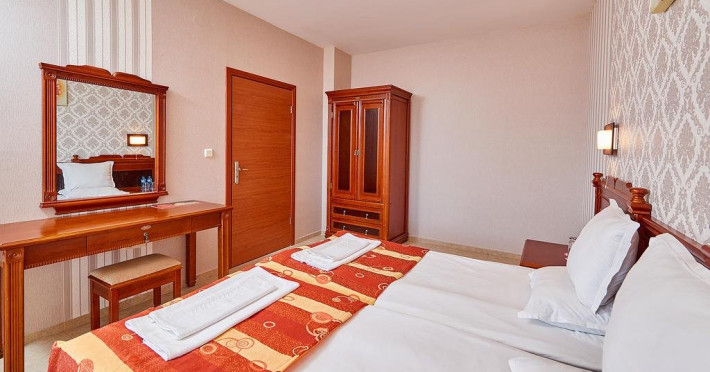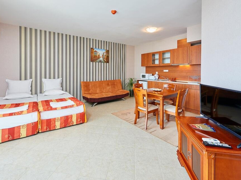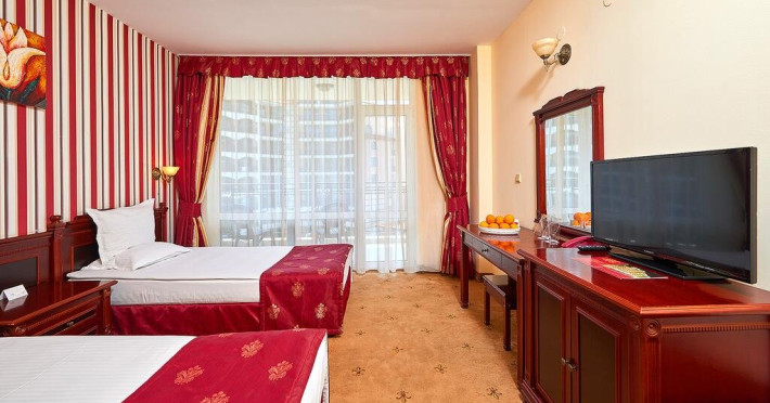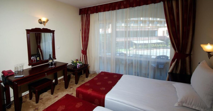 Localizare: Karolina Complex se afla in partea de sud-est a statiunii Sunny Beach, la 400 de metri de plaja cu nisip a statiunii. Centrul vechi din Nessebar este la 1,5 km. Facilitati hotel: Hotelul pune la dispozitia turistilor piscina, facilitati spa, internet cafAS, 2 restaurante, 2 baruri, dintre care unul langa piscina si unul in hol, precum si o serie de magazine. Centrul de wellness include o sala de fitness si o sauna. Dotari camere: Camerele sunt dotate cu aer conditionat, wifi, TV, mini bar, balcon, uscator de par. Site web: https://hotelkarolina.com/