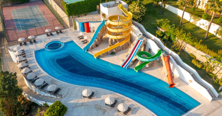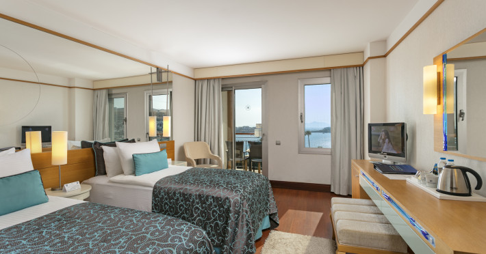 In the vicinity of the sandy beach is located the hotel Kefaluka Resort Hotel. The nearest bars and restaurants can be found at a distance of around 10 km. The city centre is around 21 km away. There is a 24h shuttle service between the hotel and theIn the vicinity of the sandy beach is located the hotel Kefaluka Resort Hotel. The nearest bars and restaurants can be found at a distance of around 10 km. The city centre is around 21 km away. There is a 24h shuttle service between the hotel and the airport (for a fee) 24h a day. The beach is patrolled by a lifeguard and awarded a blue flag. Here, there are cushions, sun umbrellas and beach towels available. At the beach there is a bar serving refreshing drinks. There is also a promenade here where you can go for a stroll. To reach the beach a shuttle (for a fee) is provided. The seasonally air-conditioned, GPS-verified halal hotel is equipped with a 24h reception (check-in is possible around the clock), a lobby bar, Wi-Fi, internet access, a lift, a supermarket and other shops, a hairdresser, showers and changing rooms, a first aid kit, parking spaces as well as a TV lounge with satellite TV. In the outdoor area of the property you will find a garden as well as a seasonally heated and supervised pool (open all year), where sun umbrellas and pool towels are available for free. There is also a separate childrens pool with 5 water slides (type open/tunnel slide). Furthermore, you can relax outdoors on a roof terrace. Inside the hotel you can use a heated indoor pool. You can store your valuables in the safe, and your luggage in the hotels storage room. In addition, the hotel Kefaluka Resort Hotel is video-monitored 24h a day. For your entertainment, the hotel offers a library/reading room, a cinema and a disco. For the young hotel guests there is a playground. For very young guests, kids chairs can also be provided. There is also a laundry service available at an additional cost to customers. Ironing equipment can be rented at the hotel for a fee. For your comfort the hotel page will ensure you are looked after. If necessary, you can contact the medical centre at any time (for a fee). For conventions and other business meetings, the hotel offers a business centre as well as a conference area with a reception, lectern, tables, scanner, overhead projector as well as internet access. A photographer can also be ordered from the hotel for business events. If you want to explore the holiday region, you can use the car rental service close to the hotel (extra fee). For guests on their honeymoon, the hotel has special offers such as a romantically-decorated room, rooms with a particularly romantic location and view, special honeymoon packages, romantic dishes in the restaurant, champagne, sparkling wine or a basket of fruit in the room. In your hotel, a lot of focus is placed on sustainability. This includes waste segregation in the rooms, the hotels own recycling bins, the provision of soap and shampoo dispensers, a central room air-conditioning and environmentally-friendly cleaning. That is why the hotel Kefaluka Resort Hotel was also awarded a sustainability certificate. American Express, Euro/Master Card and Visa are accepted as means of payment. Due to its barrier-free facilities , such as a sliding door in the entrance area, an automatic hotel door, a hotel door that can be opened manually, barrier-free entrances, wheelchair accessible rooms, a wheelchair accessible lift and wheelchair-accessible bathrooms, the hotel is also suitable for wheelchair users. Catering As catering services the hotel offers all-inclusive. Breakfast is offered from the buffet. Enjoy your lunch from the buffet. Dinner is also served as a buffet or à la carte. All Inclusive Light includes cake amp; pastries as well as international alcoholic beverages. When booking all-inclusive, one welcome drink is included. As part of the all-inclusive service, coffee and tea (24h) as well as beer (24h) are available at no extra charge. For the meals, there are a restaurant (Italian, gluten-free and vegetarian dishes) and the pool bar. The drinks menu of the hotel includes soft drinks and beer. Appropriate clothing is required for lunch and dinner. Distances Airport: approximately at 60 km Cinema: approximately at 21 km Taxi rank: approximately at 1 km Pharmacy: approximately at 1 km Hospital: approximately at 16,2 km Nearest bank: approximately at 10 km Sports amp; Leisure To keep your fitness up on holiday, there is a gym for guests to use. At the beach, you can take advantage of various water sports, including bananaboats and jet skiing. If you dont want to miss out on training with a ball during your holidays, youll find an artificial turf football pitch and the chance to play basketball. During your holiday you can also take part in aerobics courses, in Zumba courses and in yoga courses. There is also the option to play billiards. Those who want to practice archery will find facilities for this at the hotel. With beach volleyball, darts and squash various other sports offer a lot of variety on holiday. A tennis court can also be used by hotel guests. Also table tennis as well as volleyball are offered as further leisure activities. Kiting is also possible in the surroundings of the hotel. A sauna and a wellness shower await you in the. The hotel also offers massages (extra fee). Let yourself be pampered in the Hamam. In addition, nutritional advice is offered. Infants can be looked after in the hotels own baby club. For older children the care takes place in the childrens club. There is a babysitting service (extra fee) in the hotel, so that adults can also find some time to relax. Junior hotel guests can also let off steam in the mini disco. Furthermore there is a youth club. In terms of adult entertainment, evening shows and live music are presented and there is a games room available to use. Some of the sports are already included in the price. Additional information The acco