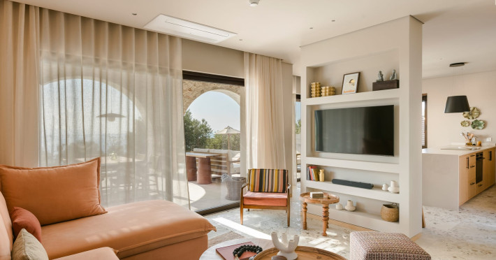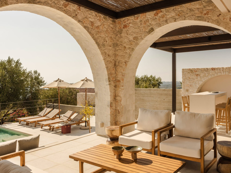 Nestled within an aged olive grove, amidst 13 acres of mountainside splendor, our six villas are masterfully designed to offer a sanctuary for the soul with the essence of historical Kefalonia.This stunning property features six exclusive villas, each with their own private pool, offering a perfect retreat for 4 up to 5 guests. What sets this property apart is its dual charm as both a tranquil getaway and an exquisite venue for hosting memorable events from intimate weddings to grand celebrations, this versatile oasis transforms your dreams into unforgettable memories.These beautifully designed villas combine privacy, comfort, and sophistication, making them ideal for families, small groups, or couples seeking a luxurious escape in serene surroundings.Guests staying at our property can enjoy the unique experience of exploring the on-site vegetable garden, where they are welcome to handpick fresh produce at their own leisure. Families will appreciate the addition of a dedicated children’s play area, offering fun and entertainment for younger guests.To make your stay truly unforgettable, we also provide a selection of personalized, tailor-made experiences designed to suit your preferences. These exclusive offerings can be arranged effortlessly by contacting our concierge during the booking process. Refundable damage depositA damage deposit of € 300 is required on arrival. This will be collected by credit card. You should be reimbursed within 7 days of check-out. Your deposit will be refunded in full by credit card, subject to an inspection of the property.Other policiesNo events, parties, or gatherings are permitted on the property unless explicitly approved in writing by the Owner. Any approved event will incur an additional event fee, as determined by the Owner, and the Guest is responsible for all associated costs.