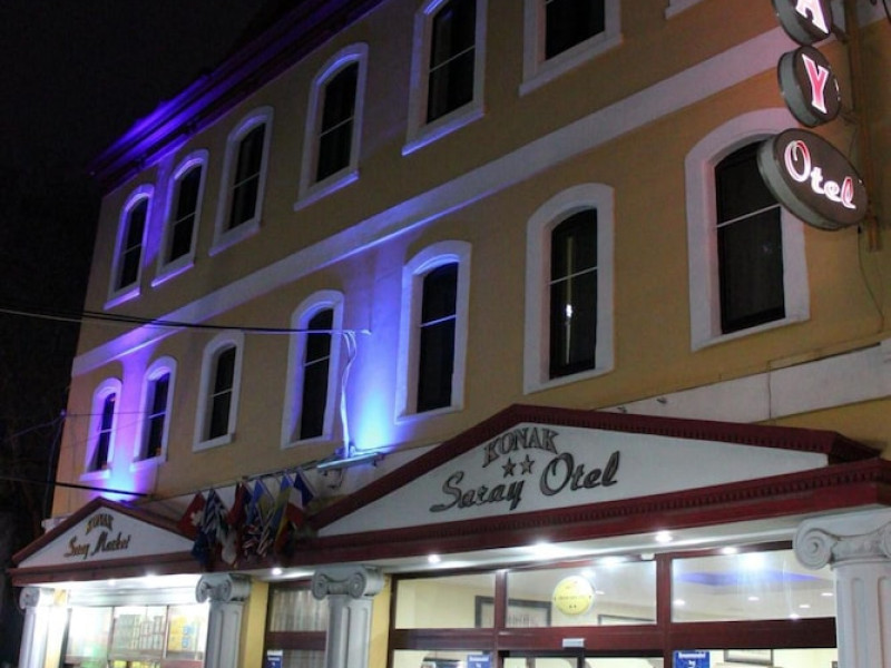 Near Kemeralti Market. A stay at Konak Saray Hotel places you in the heart of Izmir, within a 15-minute walk of Kemeralti Market and Konak Square. This hotel is 0.1 mi (0.2 km) from Smyrna and 0.2 mi (0.3 km) from Åıfalı Lux Hamam. Make yourself at home in one of the 27 air-conditioned rooms featuring minibars and plasma televisions. Complimentary wireless internet access keeps you connected, and satellite programming is available for your entertainment. Private bathrooms with showers feature complimentary toiletries and hair dryers. Conveniences include safes and complimentary bottled water, and housekeeping is provided daily. Satisfy your appetite for lunch or dinner at the hotels restaurant, antikhan otel, or stay in and take advantage of the 24-hour room service. A complimentary buffet breakfast is served daily from 7:30 AM to 10:30 AM. Make use of convenient amenities such as complimentary wireless internet access, a television in a common area, and a reception hall.