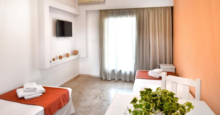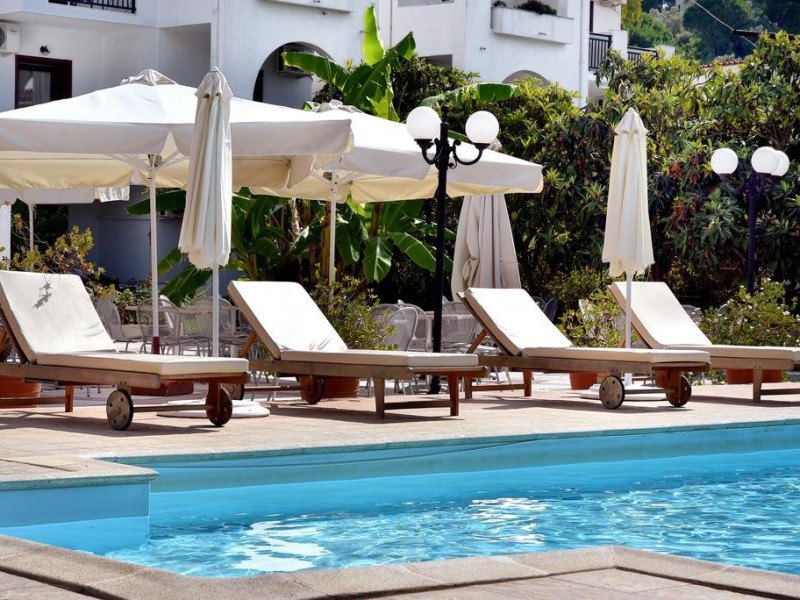Descriere: Apartamentele Korali sunt ideale pentru familii si cupluri care doresc o vacanta relaxanta in Skiathos. Localizare: La numai 80 m de plaja Troulos si 10 Km de centrul orasului Skiathos. Facilitati hotel: restaurant, bar, receptie, 2 piscine cu sezlonguri, salon TV, seif si parcare. Dotari camere: 25 apartamente duble (garsoniere), 7 junior suite si 9 apartamente cu 2 camere dotate cu: TV, frigider, telefon, aer conditionat, seif (contra cost), baie proprie cu dus sau cada, uscator de par, chicinweta complet utilata, acces Wi-fi, balcon. Pagina web: www.skiathoskorali.gr